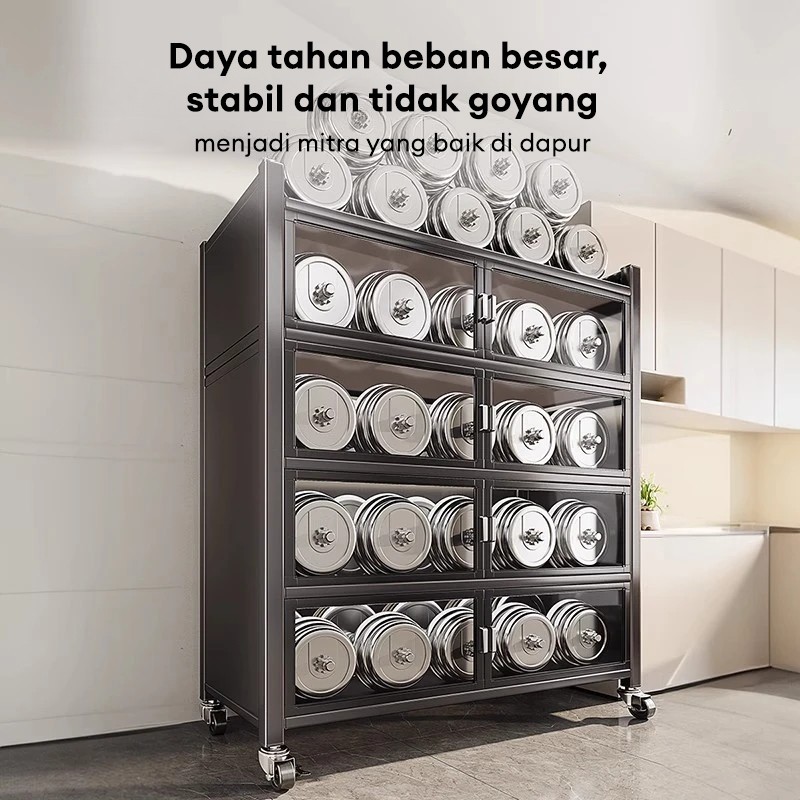 Rak Oven Microwave Rak Lemari Dapur Rak Lemari Dapur Stainless Steel Rak Kabinet Dapur Dengan Roda Dengan Pintu Lemari D
