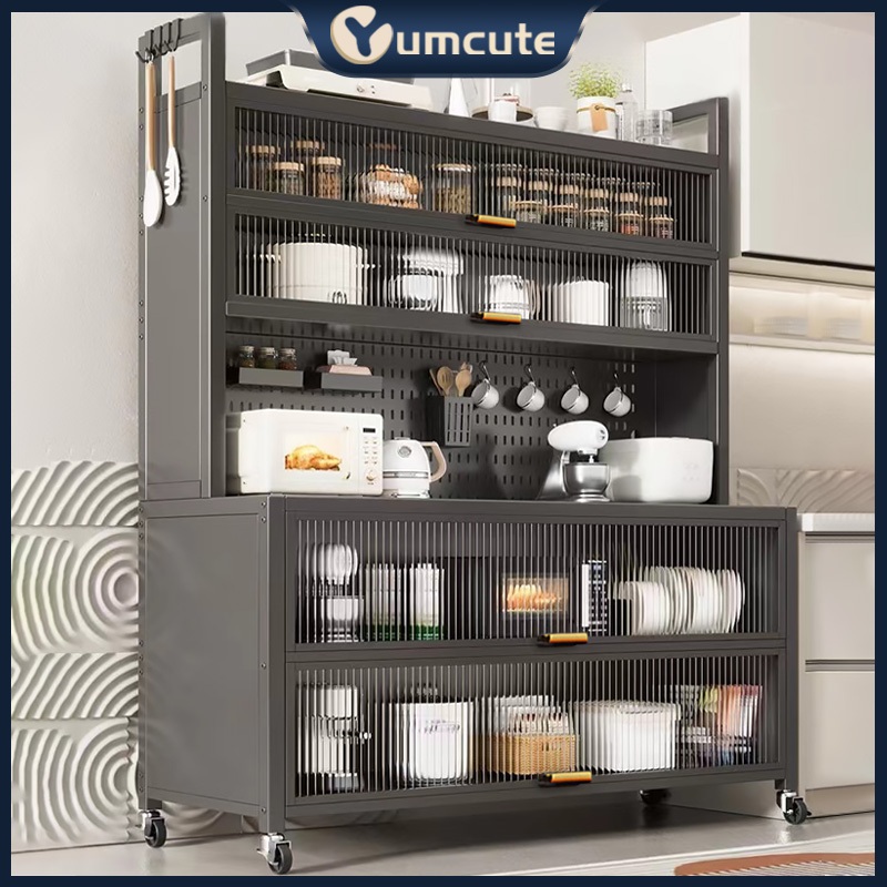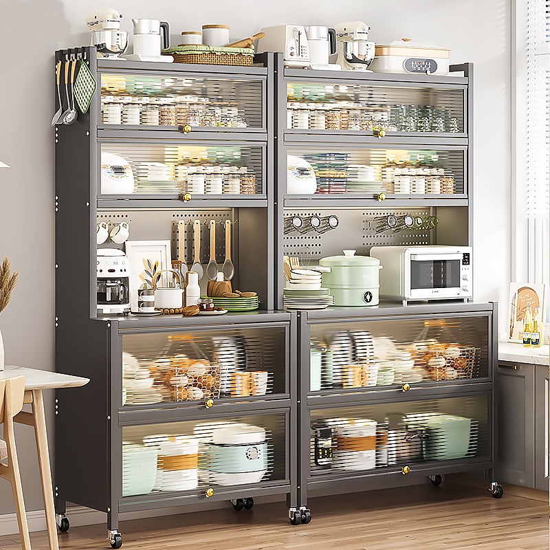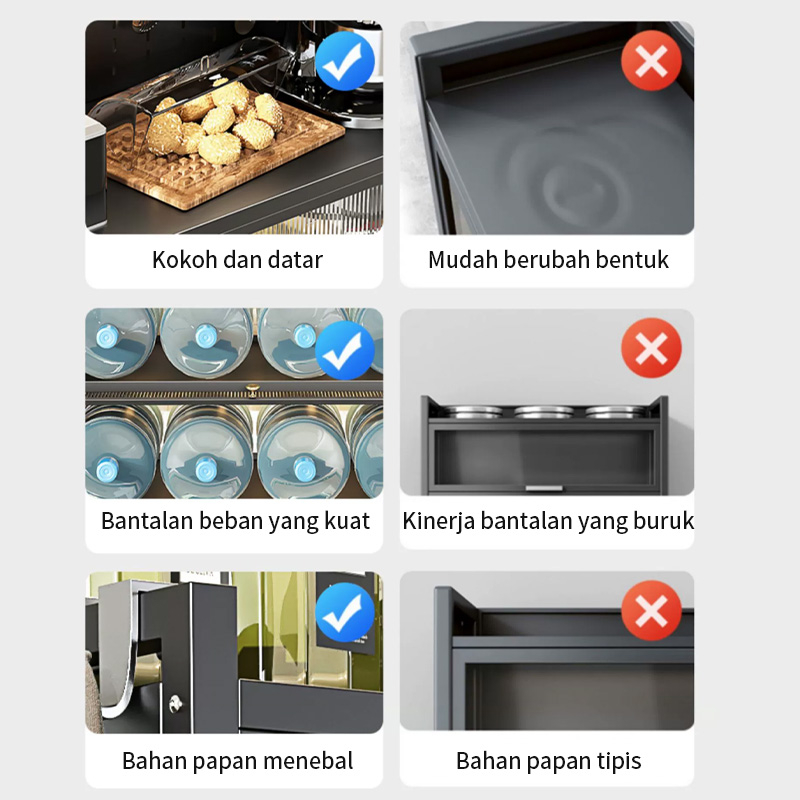 Rak Dapur Bufet Stainless Steel Bufet Multifungsi Lemari Penyimpanan Kabinet Penyimpanan Kabinet Microwave Listrik Denga