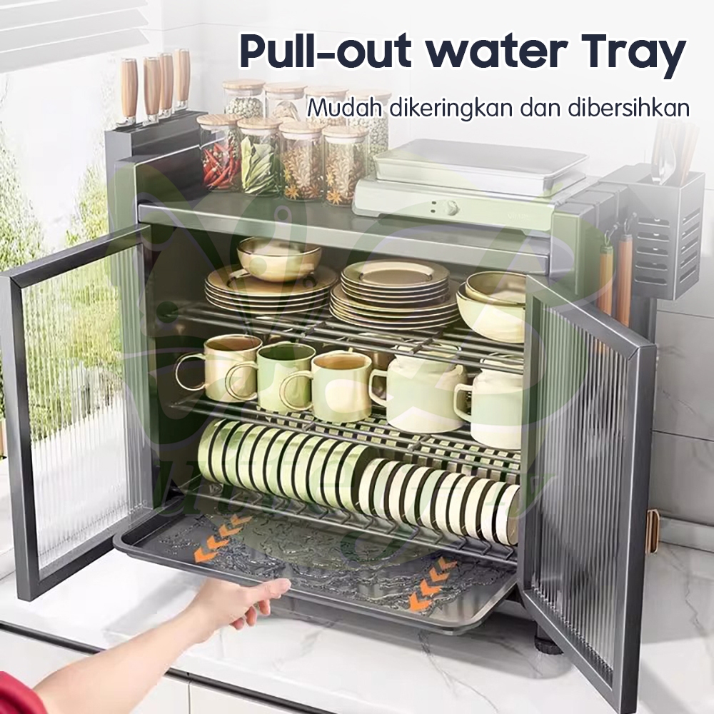Rak Piring Tertutup Rak Cuci Piring Stainless Pengering Piring Stenlis Dapur Dish Rack Dish Drainer