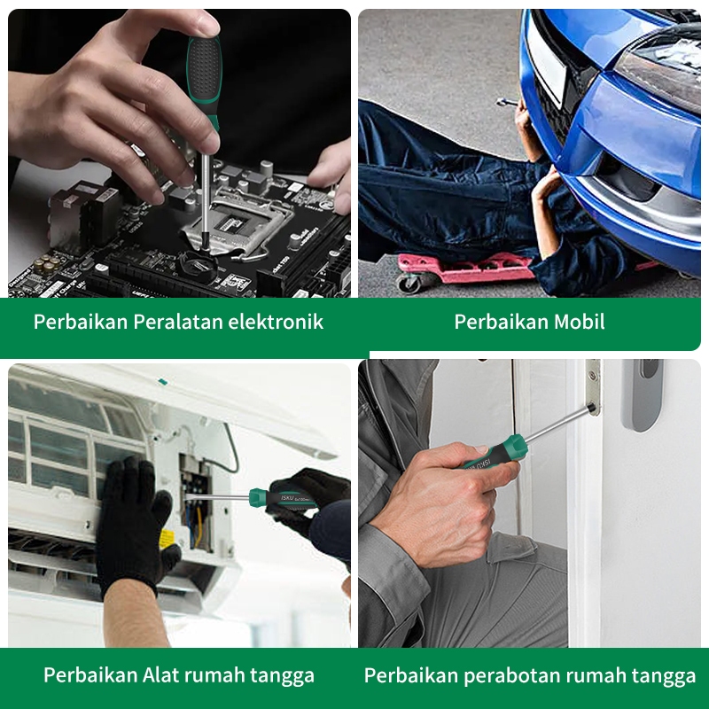 ISKU Obeng Set Screwdriver Sets 2PCS 5150mm + —Plus / Minus Magnet 2 in1 komplit Obeng Super Kuat Bahan Chrome Vanadium