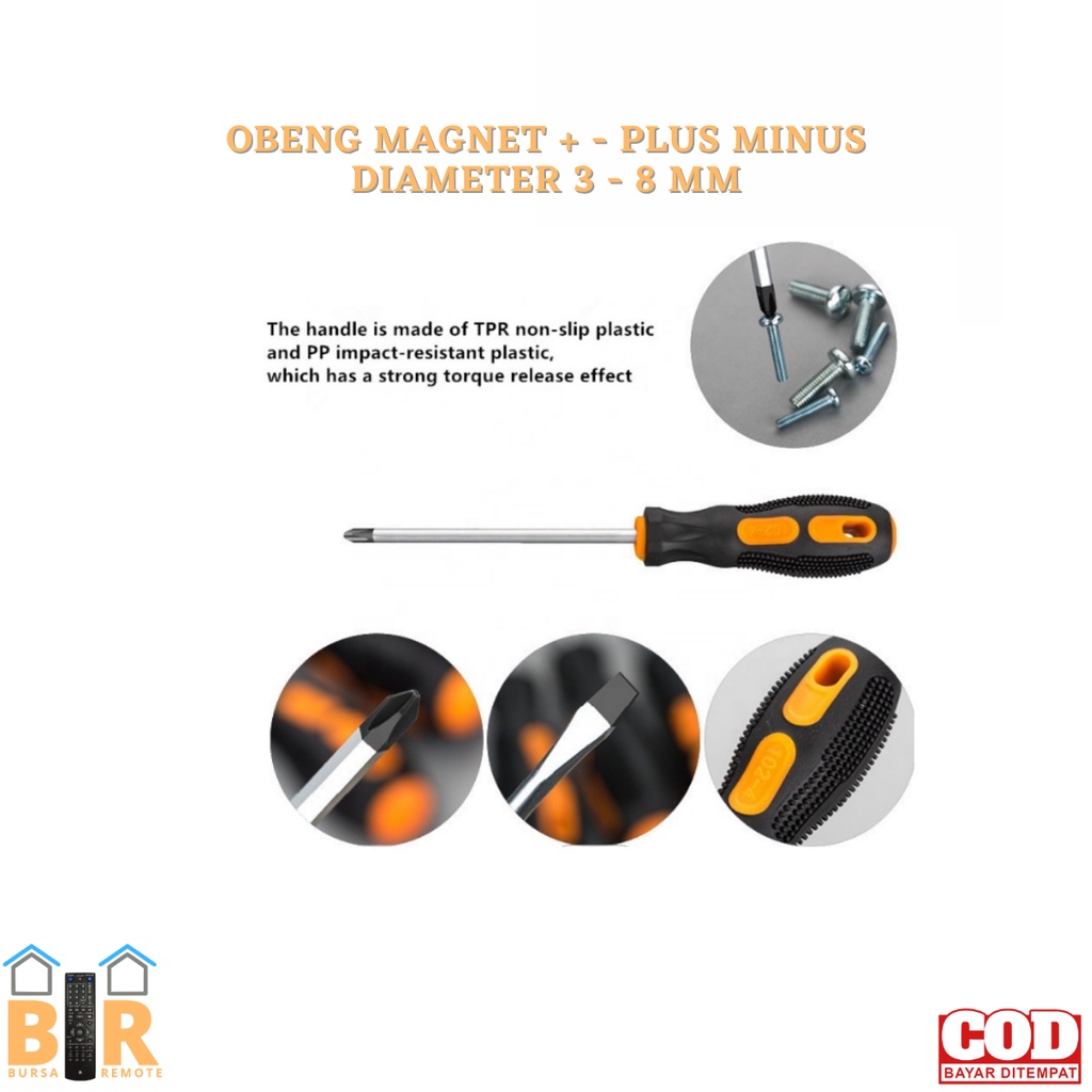 Obeng Magnet Gagang Karet Plus Minus 5MM 6MM 8MM