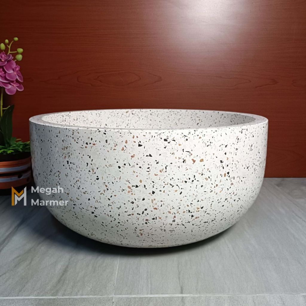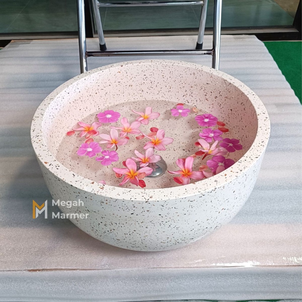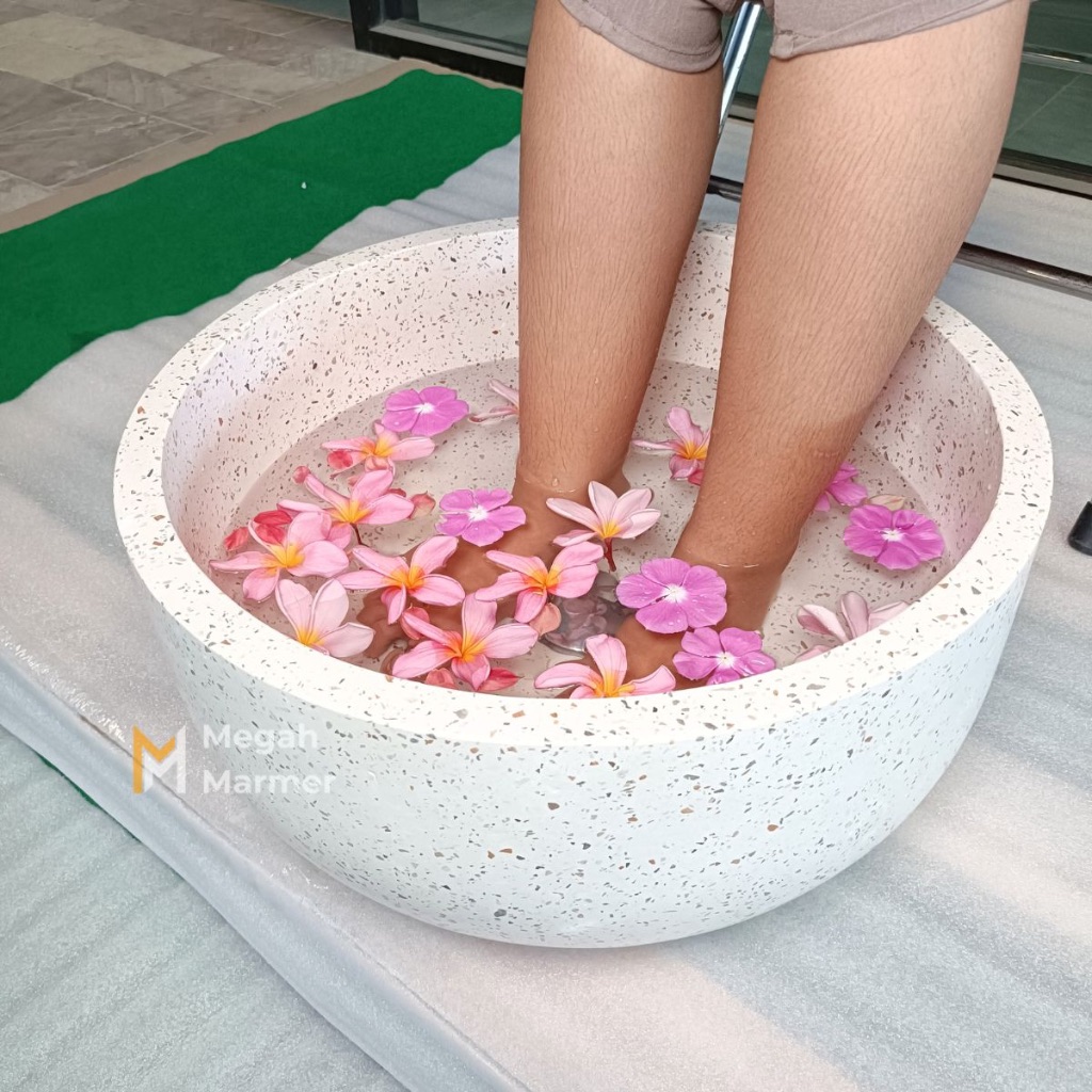 Megah Marmer | Wastafel Rendaman Kaki SPA Salon Ukuran 45 Tinggi 20 Warna Cream Glosy Free Packing