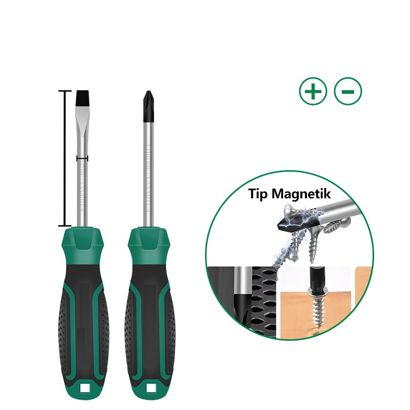 Obeng Plus Minus Magnet Chrome Vanadium Ergonomis