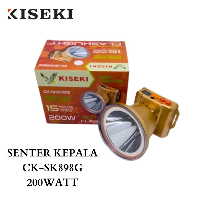 Kiseki Senter Kepala CK-SK898G Cahaya Putih 200Watt 9900mAH Kapasitas Baterai Tahan Hingga 15 Jam e Penerangan