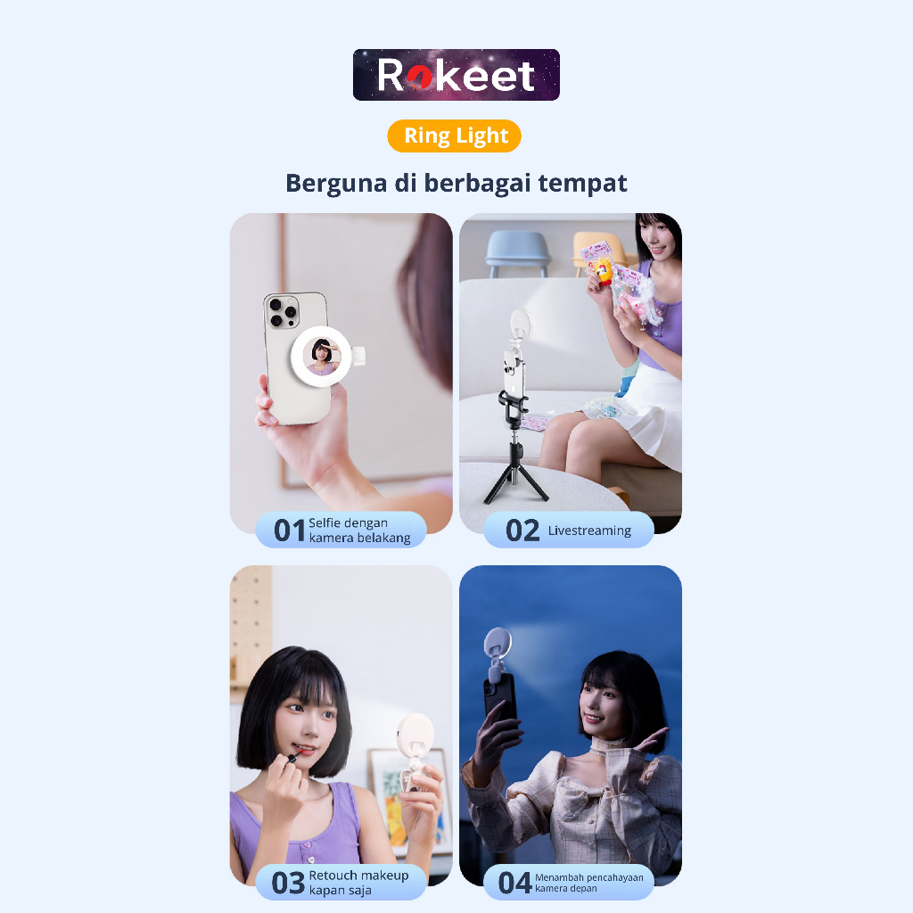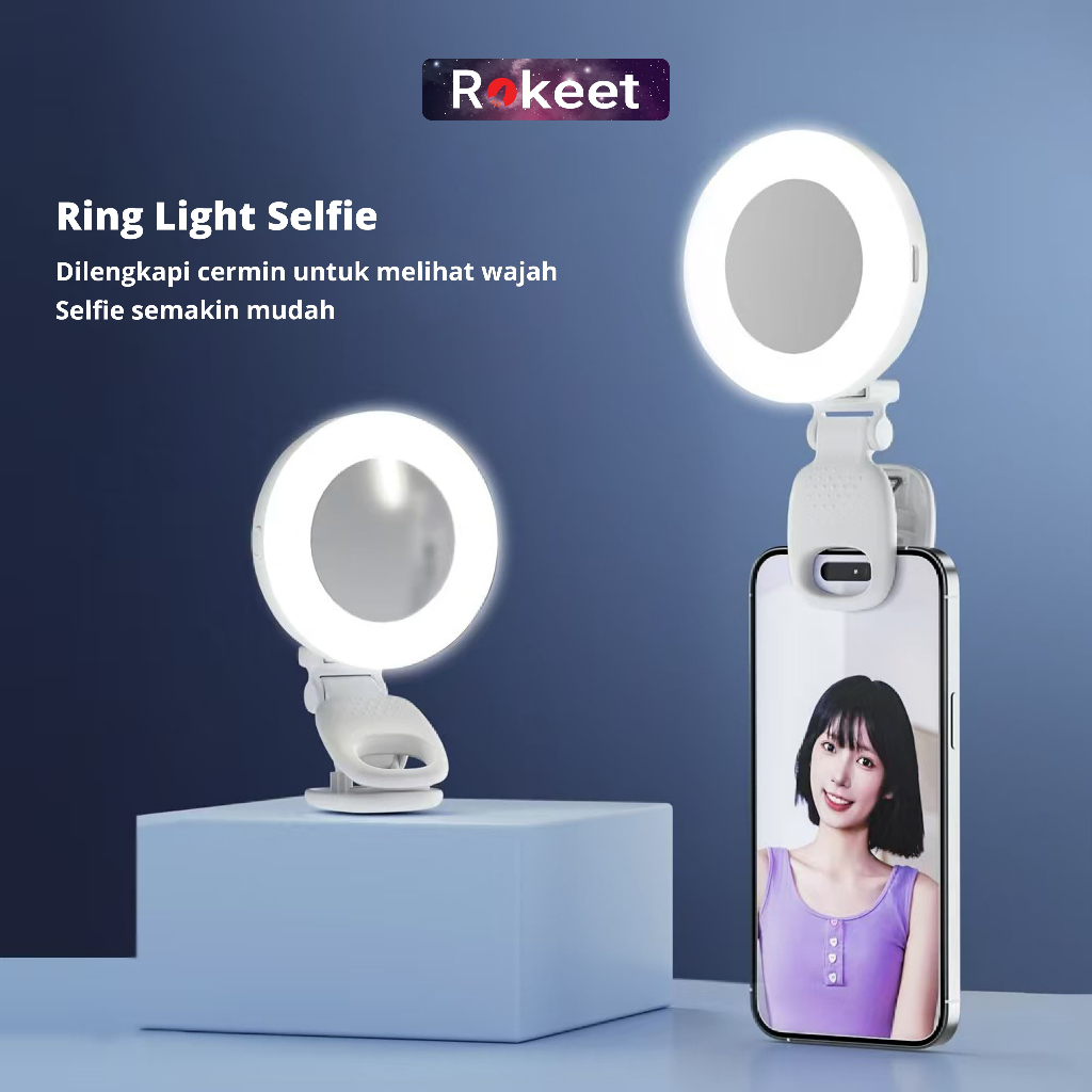 [PROMO] Ring Light Mini Portable Lampu Selfie 180° Handphone Jepit Dengan Cermin & 9 Level Pencahayaan