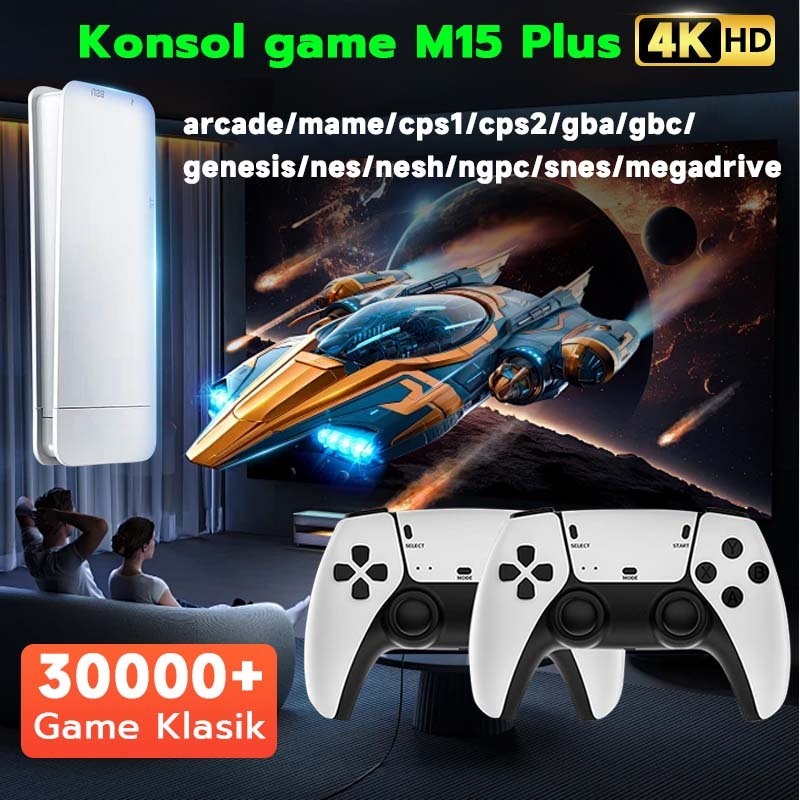 M15Plus Game Stick 4K Wireless Gamepad 2Player HDMI Connect PS1 30.000+ Games Retro Game Console For TV + Computer + Proyektor