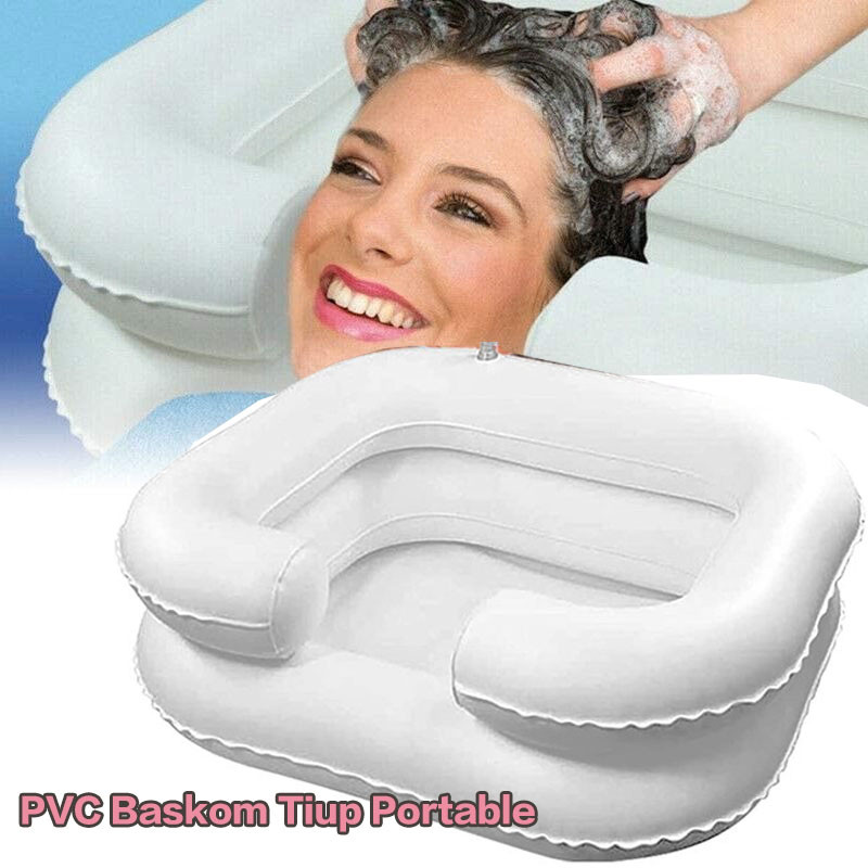 PVC Baskom Tiup Portable Cuci Rambut Keramas Wastafel Portabel Rumahan Baskom Kaki L4ppis Ganda