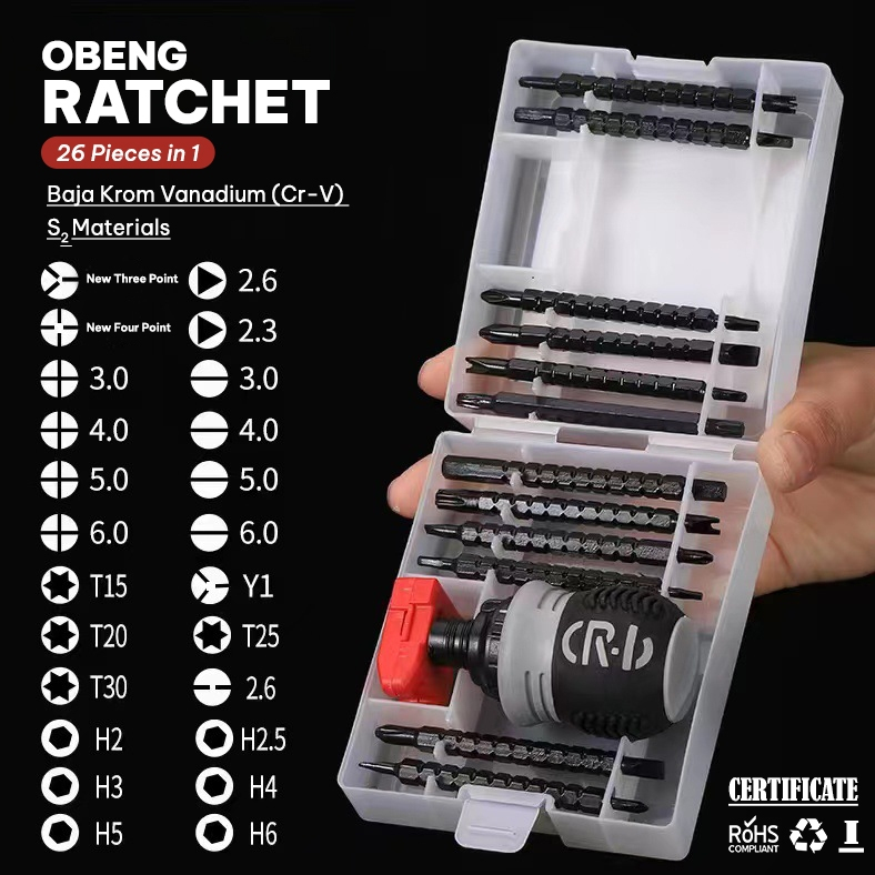 Obeng Cebol Mini 26 in 1 Bolak-Balik Rachet Multifungsi Screwdriver Mata Obeng Set Premium- G2A1