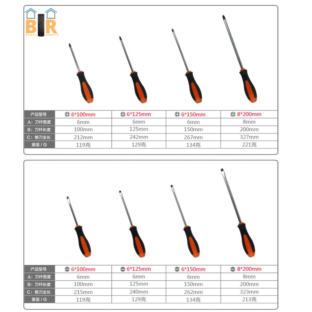Obeng Magnet Gagang Karet Plus Minus 5MM 6MM 8MM