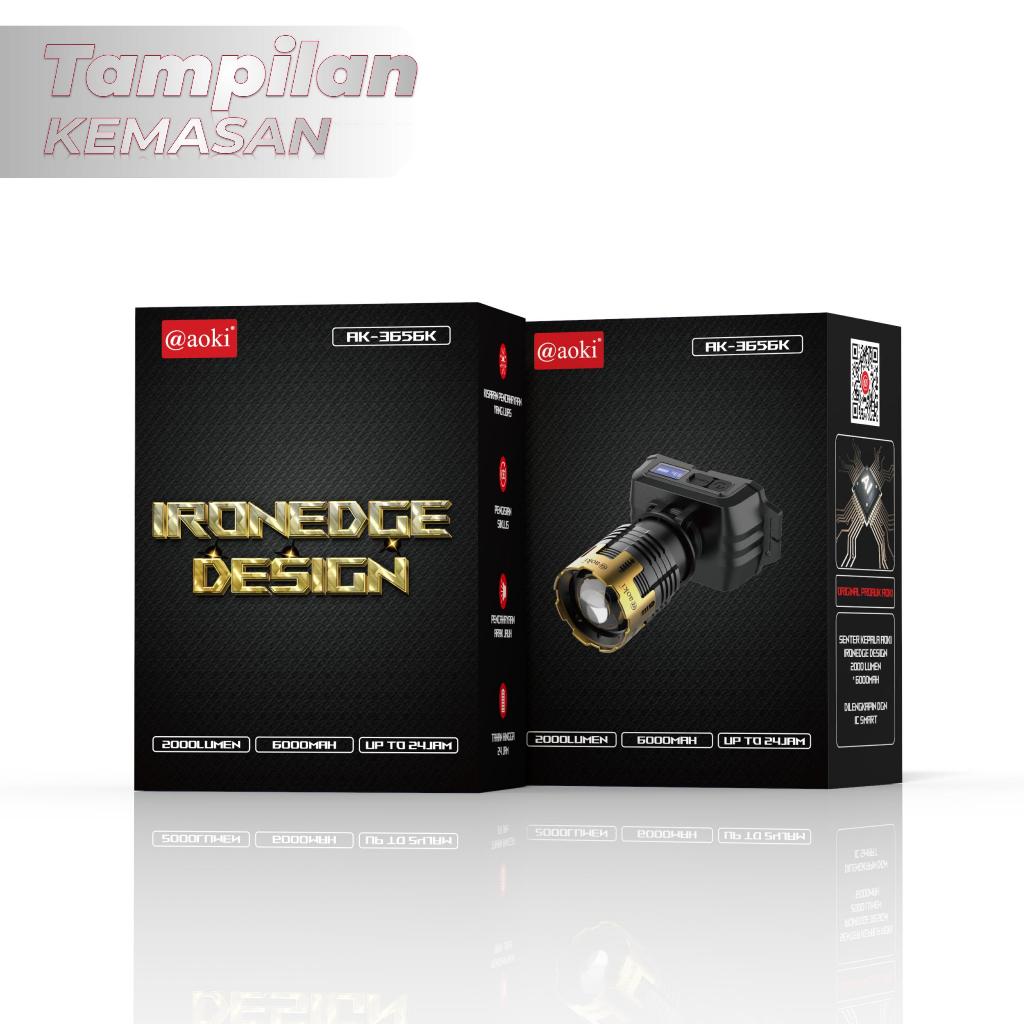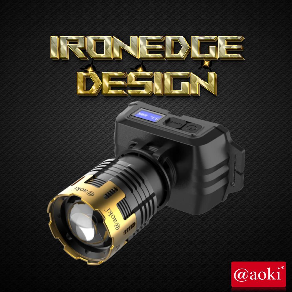 AOKI Lampu Kepala LED IRONEDGE DESIGN, Cahaya Kuat Jarak Jauh, Zoom Fokus & Sinar Luas, Headlamp USB Recgeable untuk Out
