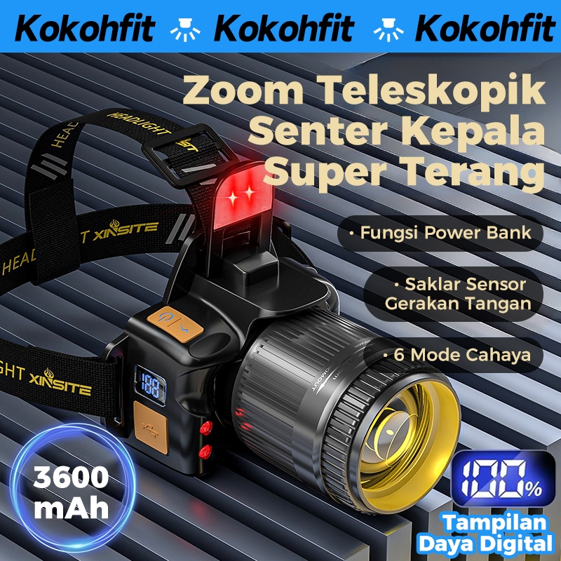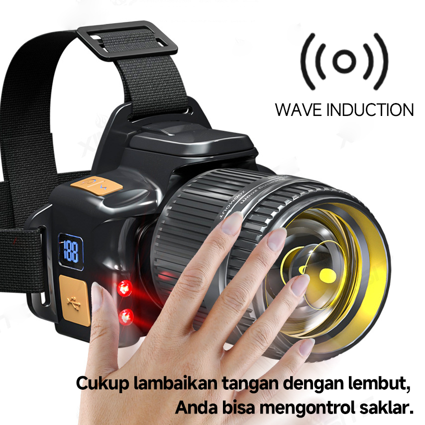 Senter Kepala T243 / T247 Zoom Super Terang LED Headlight 1500Lumen 15W Tipe-C 1800mAh*2