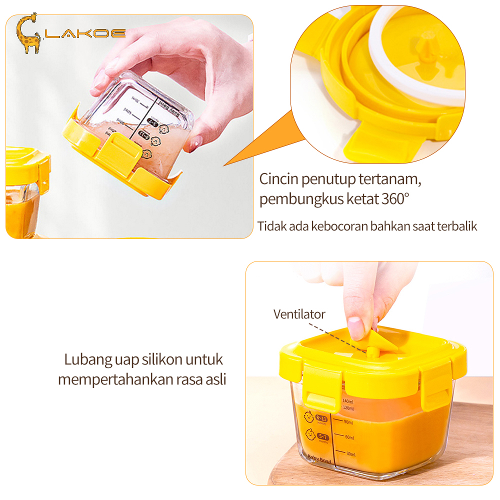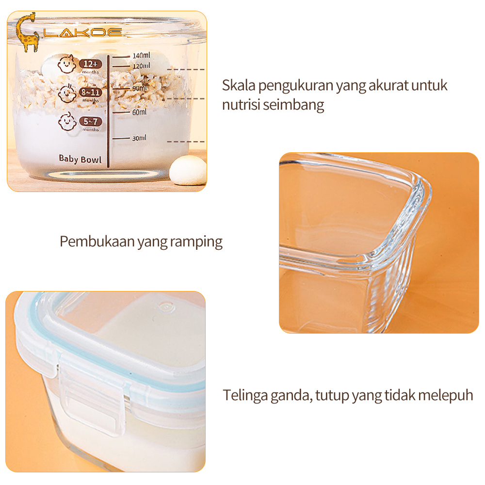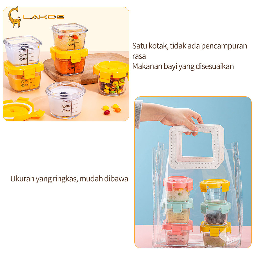 SR - LAKOEOFFICIALMALL Tempat Kotak Mpasi Kaca Wadah Mpasi Kaca Penyimpanan Mpasi Glass Baby Food Container