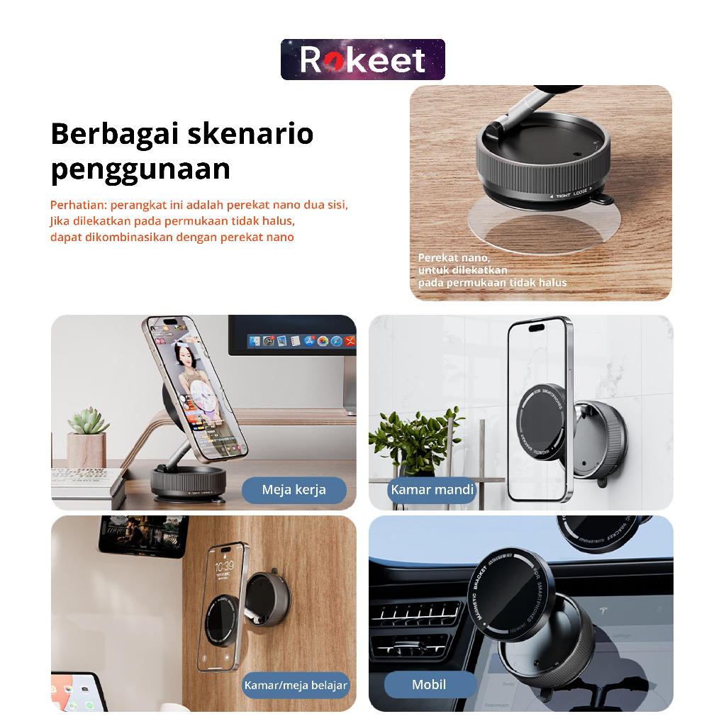 [PROMO] Stand Holder Hp Magnetic Lipat Dengan Suction Cup & Zinc Alloy Handphone Universal