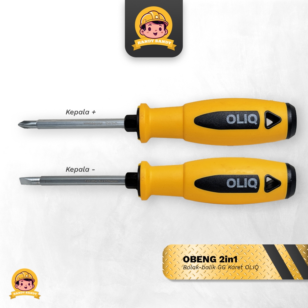 OLIQ Obeng Bolak Balik 2in1 Gagang Karet 4" Inch - Kepala Magnet