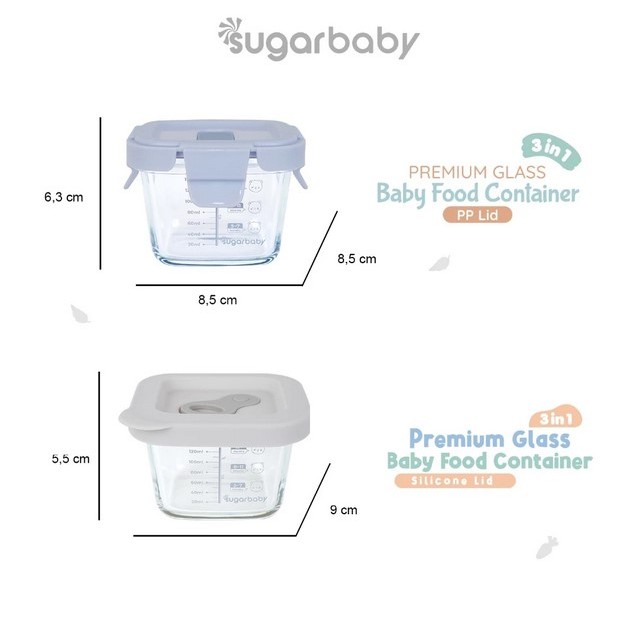 SugarBaby Premium Glass Jar Baby Food Container 3 pcs BPA FREE GJARPP GJARSIL + BABY GIORDANO MPASI KACA SILICON BG-8811