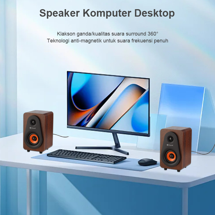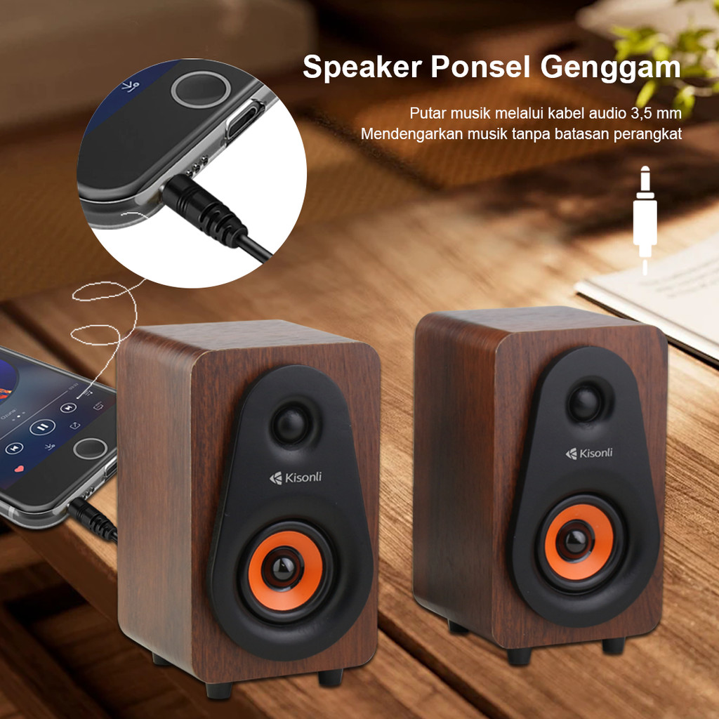 KISONLI Speaker Komputer/Laptop Motif Kayu T009 Speaker PC Dekstop Multimedia Strong Bass