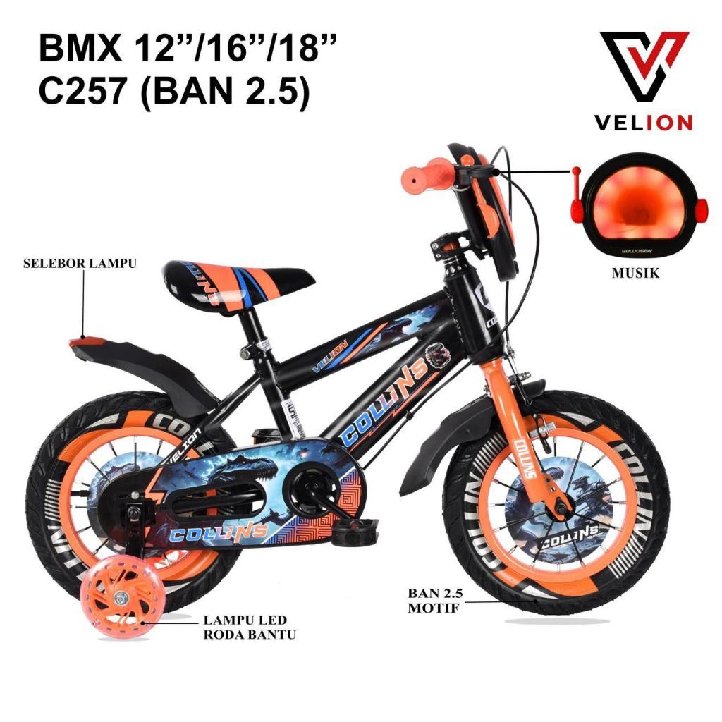 SEPEDA Velion COLLINS - SALVO C254 BMX 12" - 16" - 18" fitur TAMENG dengan MUsik dan lampu ban jumbo 2.50 bonus botol mi