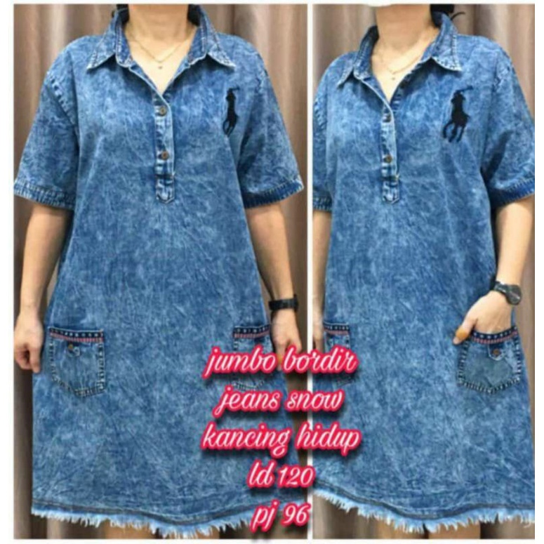 TUNIK JINS JUMBO BORDIR/atasan jins ld 120cm/DRESS WANITA/DRESS BORDIR/DRESS JUMBO/TUNIK JUMBO/TUNIK WANITA/TUNIK JEANS/