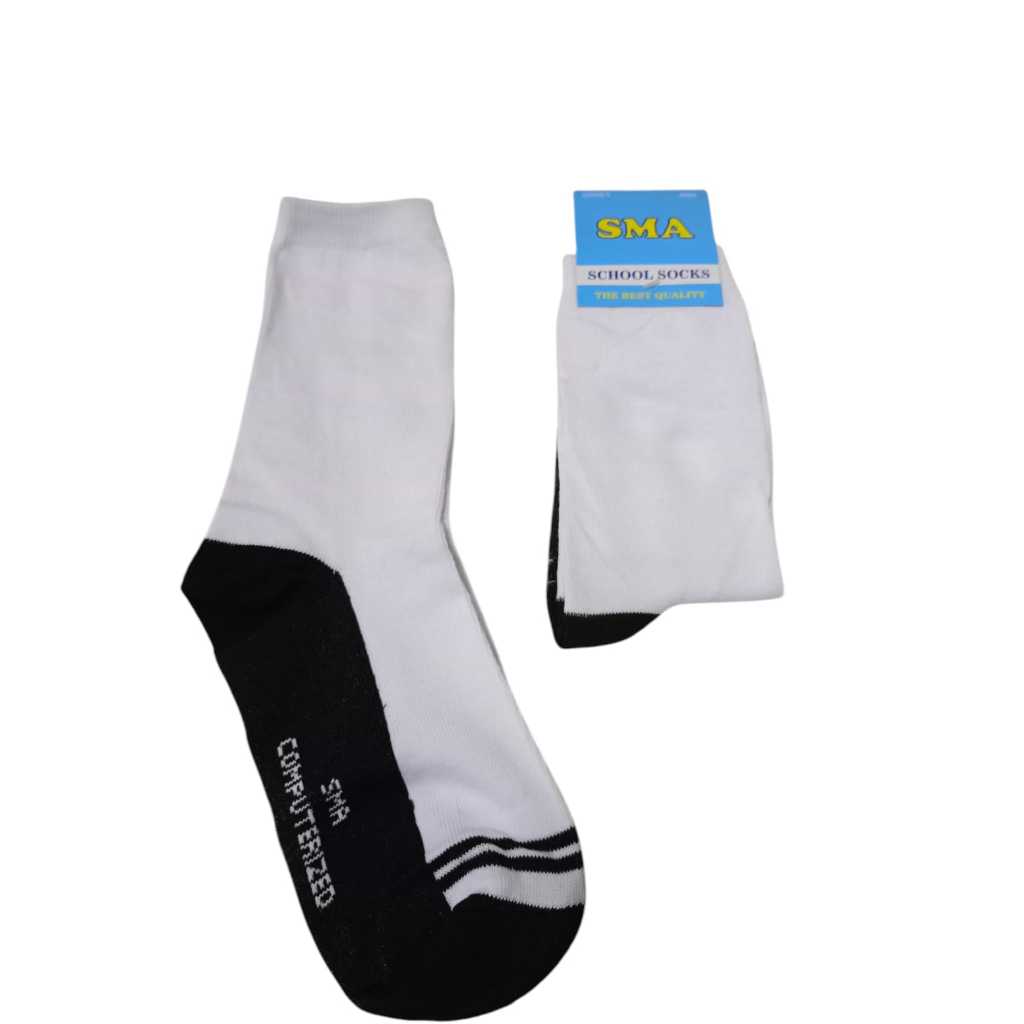 3PASANG KAOS KAKI PUTIH TELAPAK HITAM PANJANG UKURAN SD SMP DAN SMA
