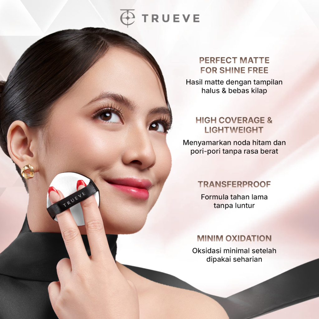 TRUEVE Velvet Hi-Cover Mesh Cushion - High Coverage, Tahan Lama Seharian, Minim Oksidasi, Poreless Matte Velvet Finish