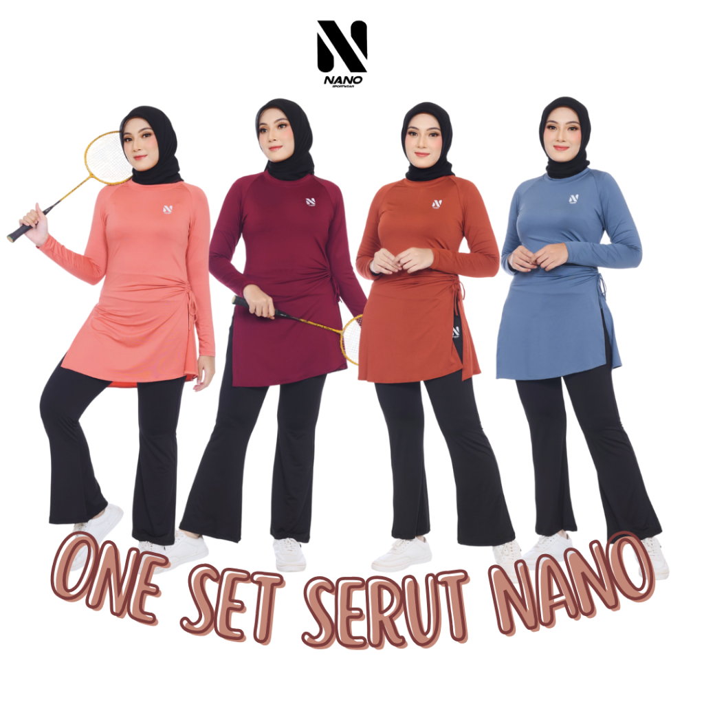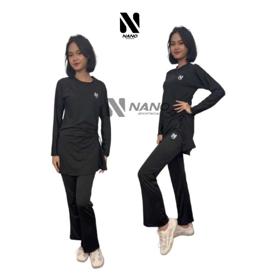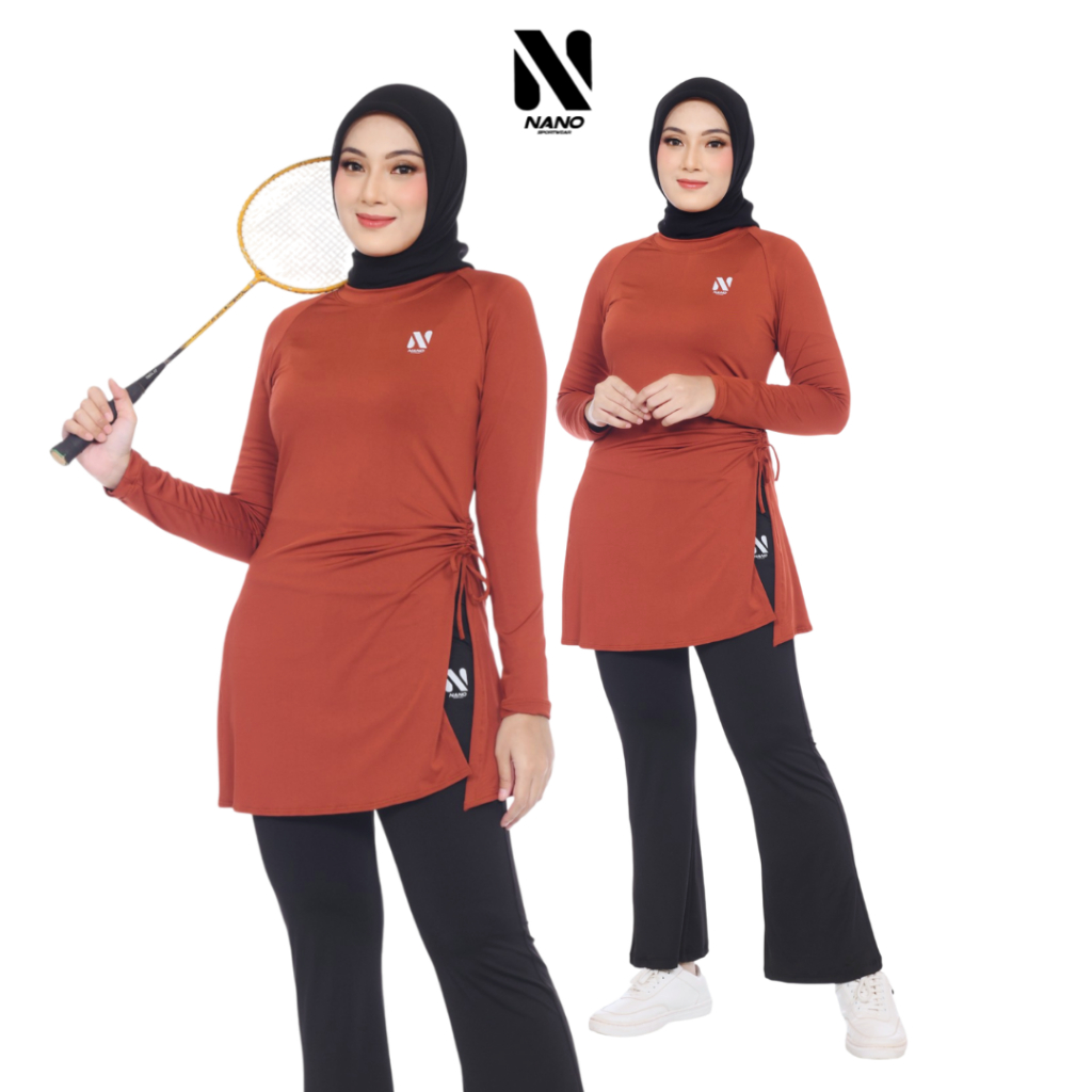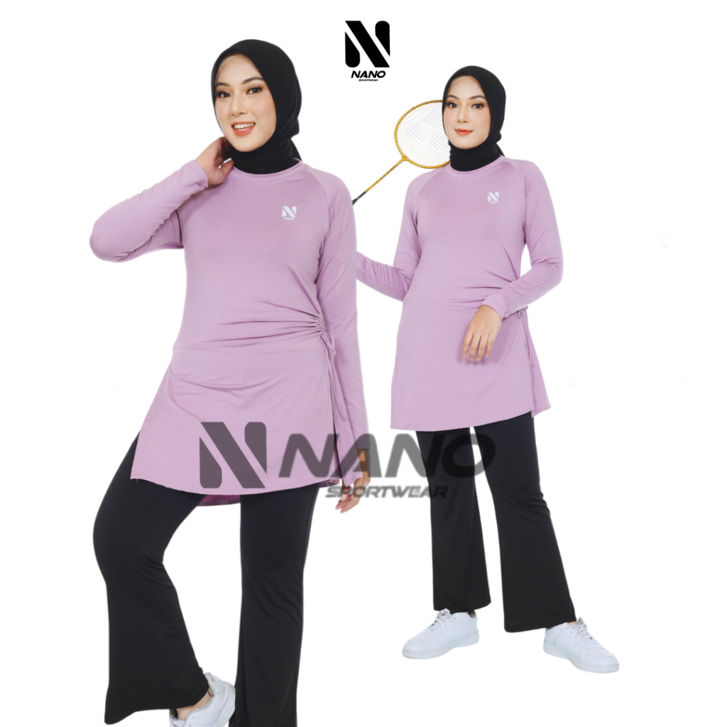 Gratis Ongkir Nano Sportswear Baju Senam Wanita Tali Serut Samping Baju Olahraga Wanita Baju Gym Wanita Muslimah