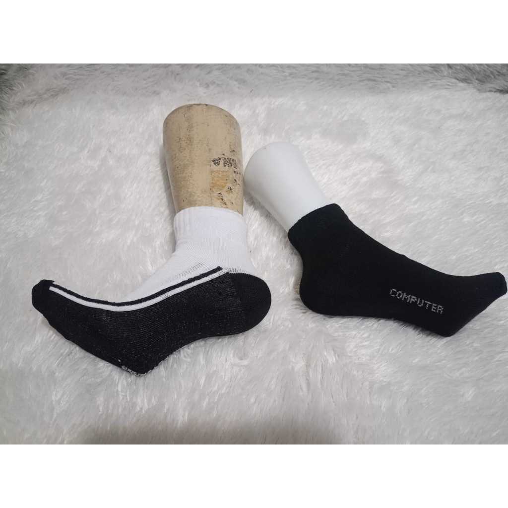 3Pasang Kaos Kaki Putih Telapak Hitam , Kaos kaki Hitam Putih Pendek SD SMP SMA