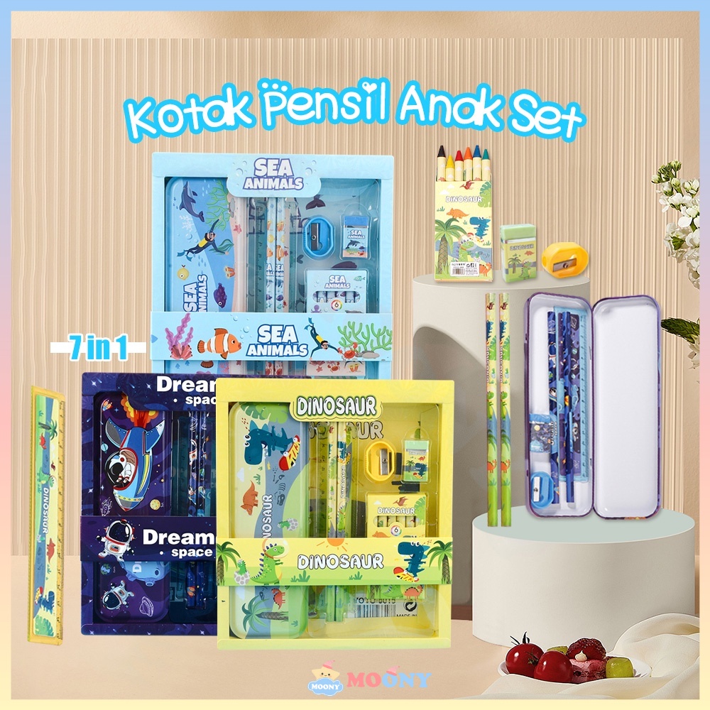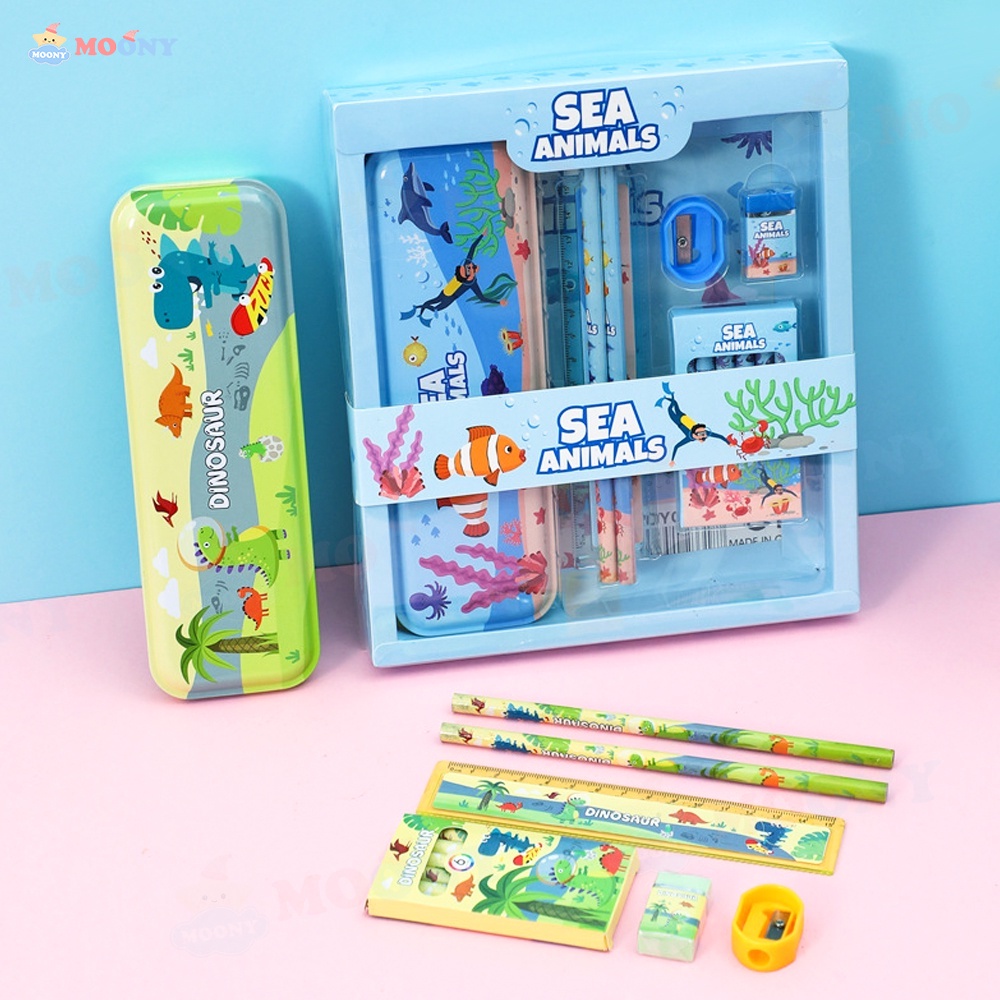 Moony Sekolah kotak pensil Alat tulis lengkap Stationery untuk hadiah anak Kotak pensil anak set