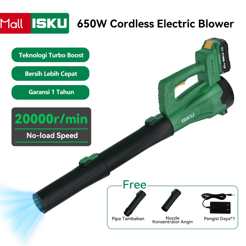 ISKU Blower Listrik 650W Tanpa Kabel Electric Blower Industr Turbo Boost, Kecepatan Tinggi 20000r/min, Daya Kuat, Bersih