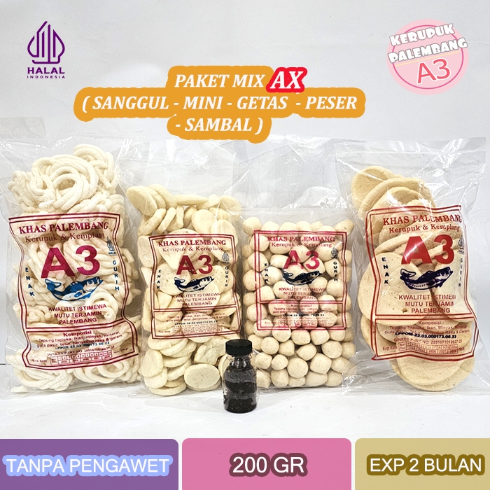 PAKET MIX A - KERUPUK MINI PESER SANGGUL GETAS KEMPLANG IKAN TENGGIRI 800GR