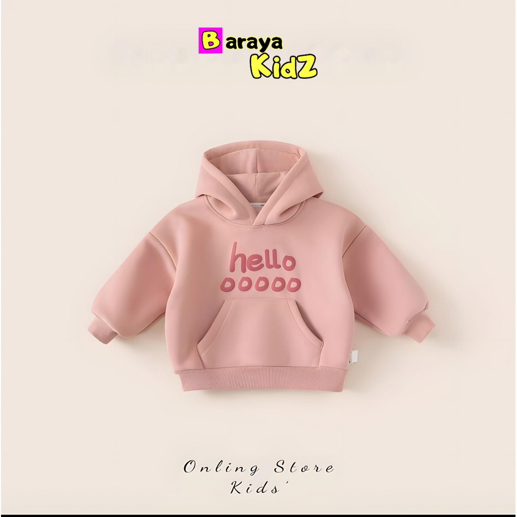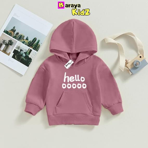 jaket anak [ Baraya Kidz ] Sweater Hoodie Anak Usia 1-8 Tahun Hodie Anak Unisex Motif Heloooo Cewek Cowok Atasan Fashion