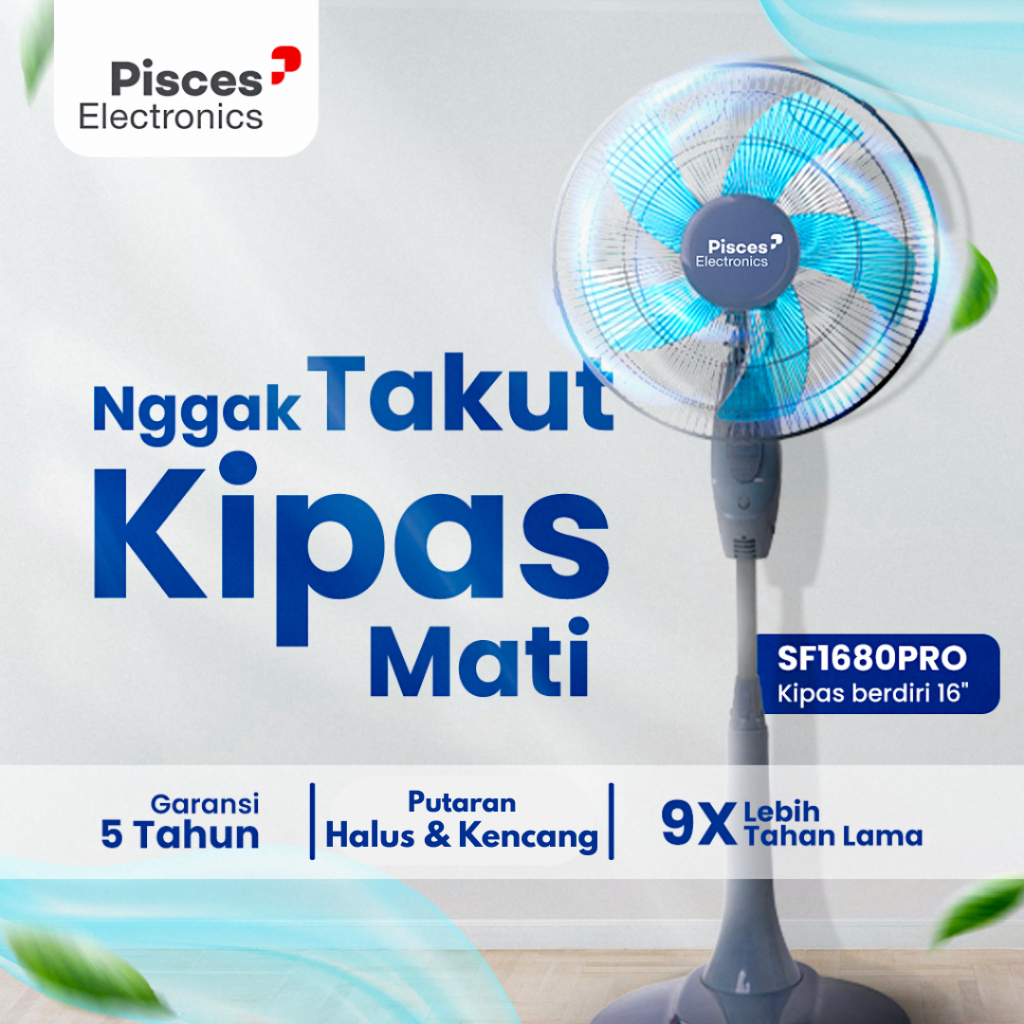 Pisces 1680PRO | Kipas Angin Berdiri Stand Fan 16" Garansi Resmi 5 Tahun dengan teknologi Bearing