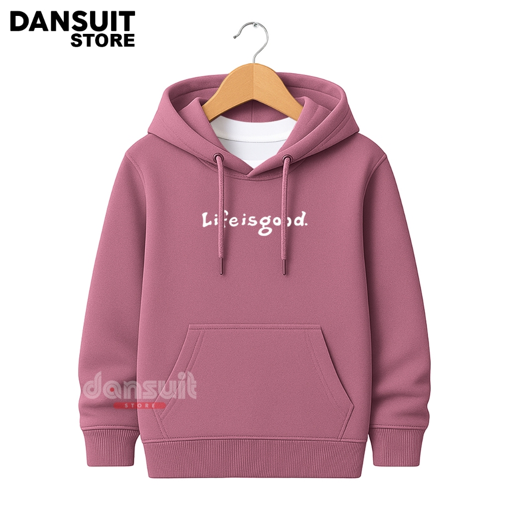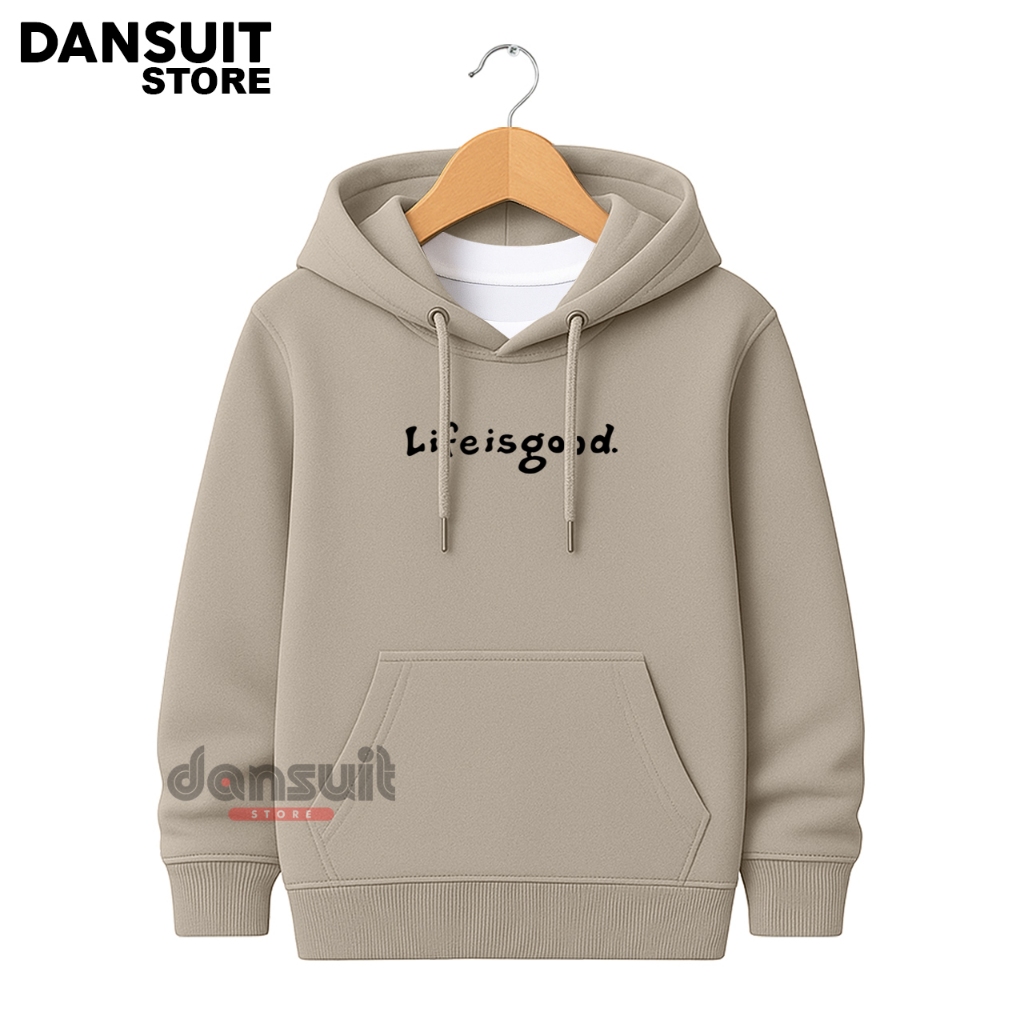 jaket anak Sweater Hoodie Anak Laki-laki/Perempuan Umur 4-14 Tahun Motif Sablon LIFE IS GOOD Bahan Tebal Premium