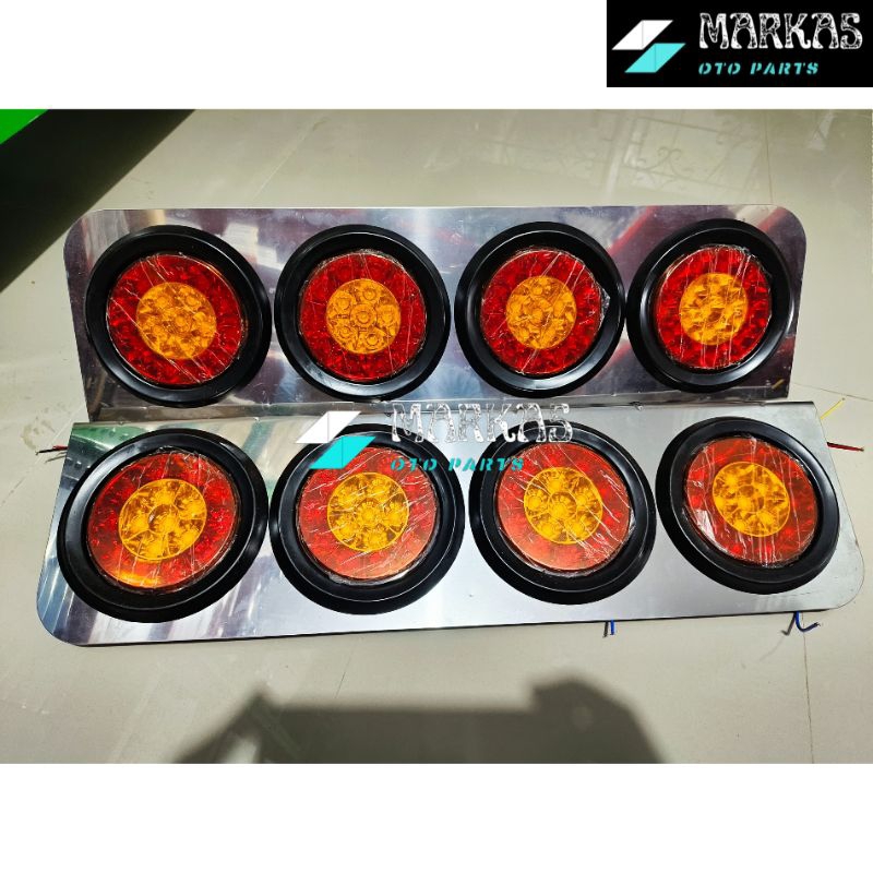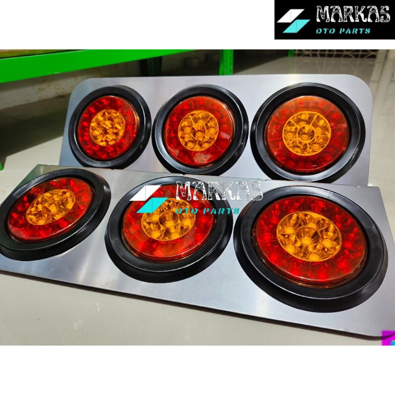 Sepasang Lampu Led Stop Lamp Truck 12volt - 24volt Model 402 / 302 Stainless Merah Kuning Lampu Rem Belakang Truk Varias