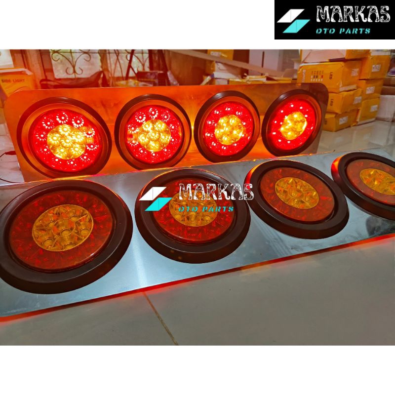 Sepasang Lampu Led Stop Lamp Truck 12volt - 24volt Model 402 / 302 Stainless Merah Kuning Lampu Rem Belakang Truk Varias