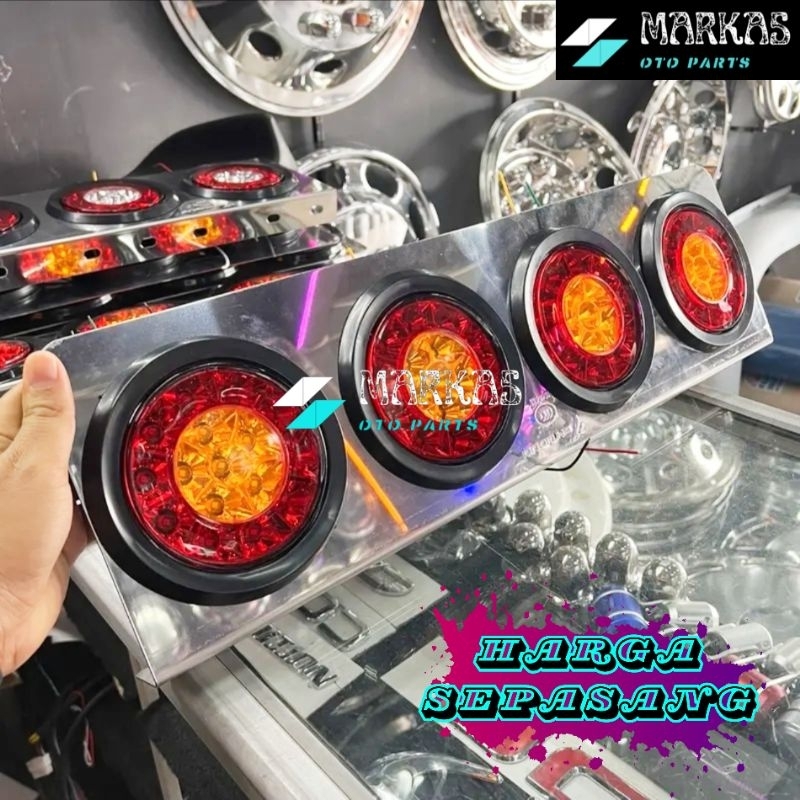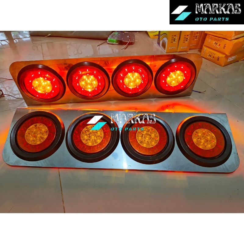 Sepasang Lampu Led Stop Lamp Truck 12volt - 24volt Model 402 / 302 Stainless Merah Kuning Lampu Rem Belakang Truk Varias