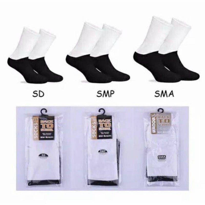 Back To School Kaos Kaki Anak Sekolah Sd Smp Sma Putih Hitam Putih Polos Hitam Polos