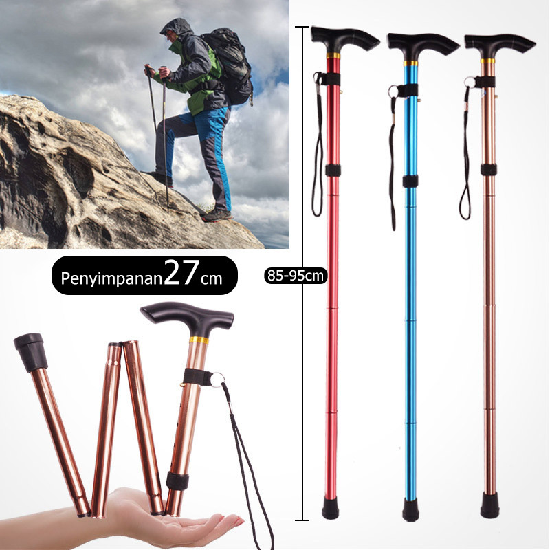 Tongkat Lipat Tongkat Portabel Alat Bantu Jalan1 Kaki Stainless Bahan Trail Ultralight 4 Bagian