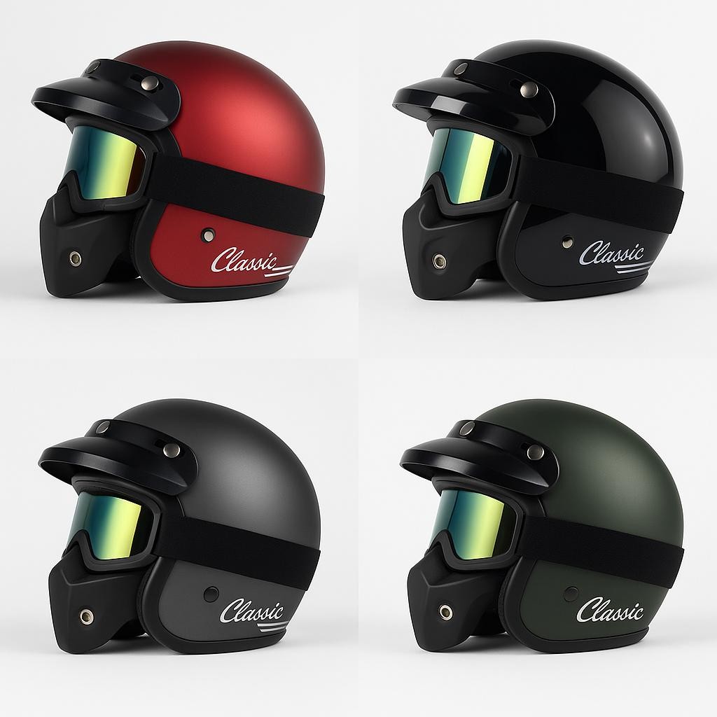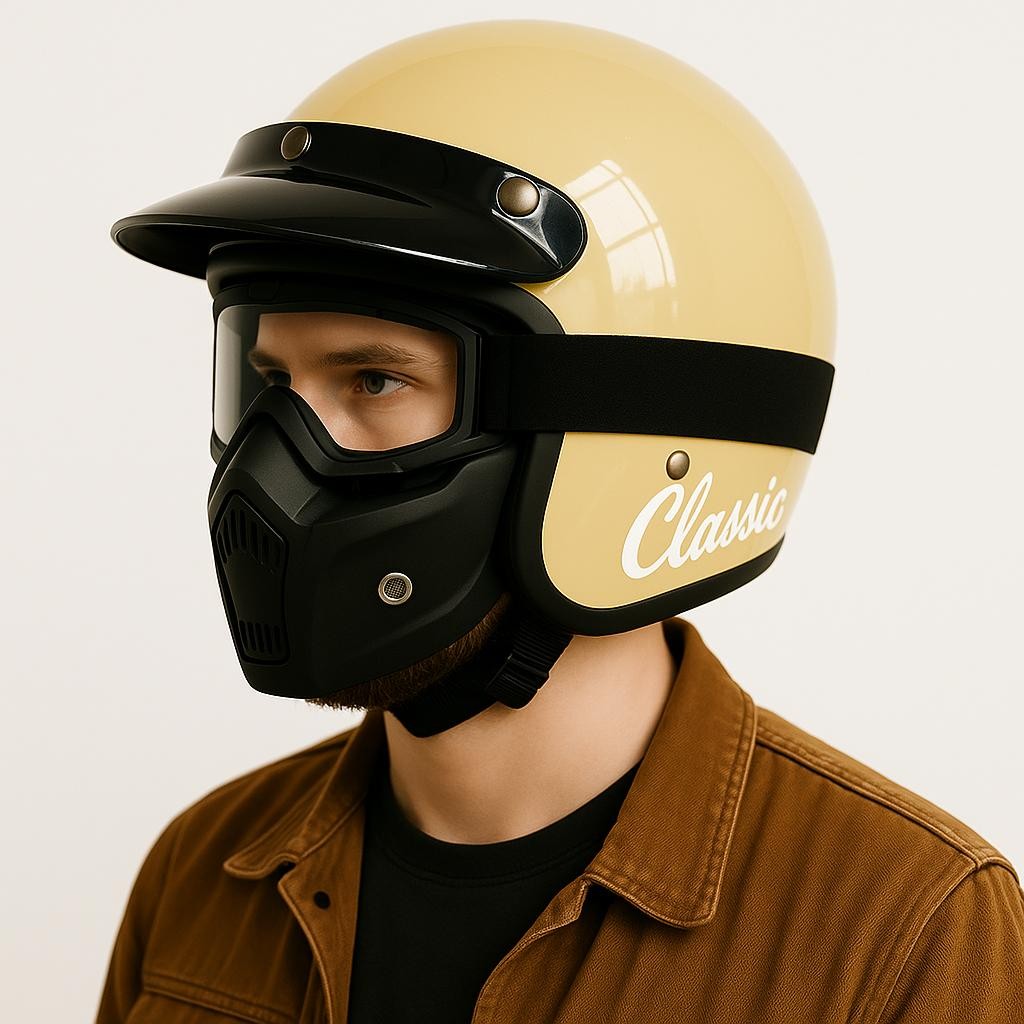 Helm Bogo Classic Pria Dewasa Full Face Kacamata Google Mask Pet Pendek Ori Aman SNI Motorcycle