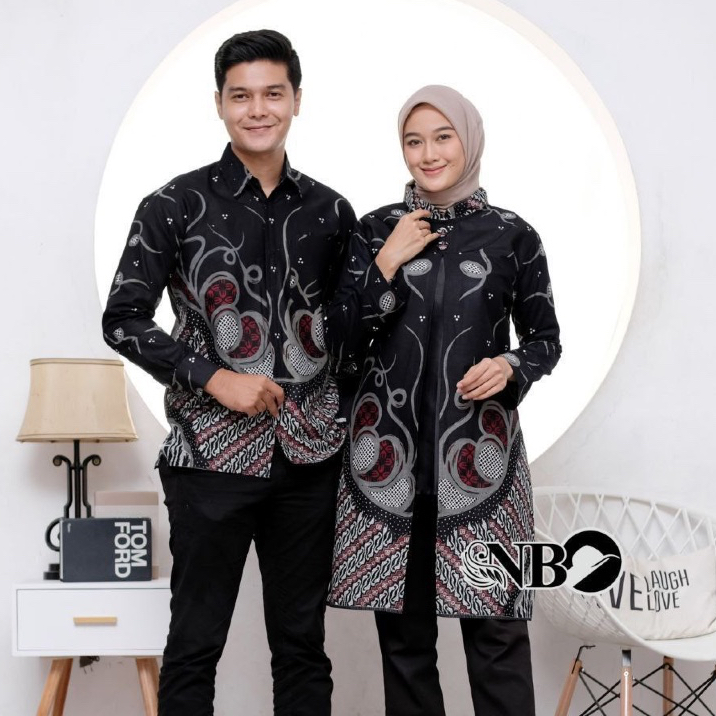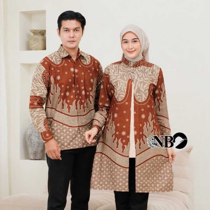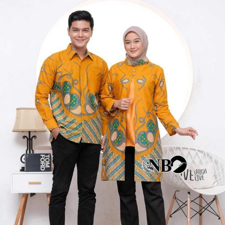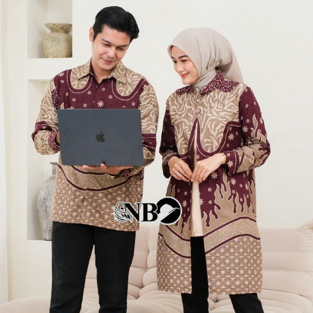 Terbaru Couple Batik Kemeja Batik Tunik Couple Pasangan Pria Wanita Batik Lengan Panjang Pria Wanita batik kantoran terb