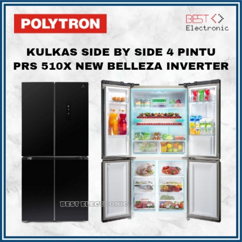 KULKAS SIDE BY SIDE 4 PINTU POLYTRON PRS 510X PRS 510 BELLEZA INVERTER 480 LITER