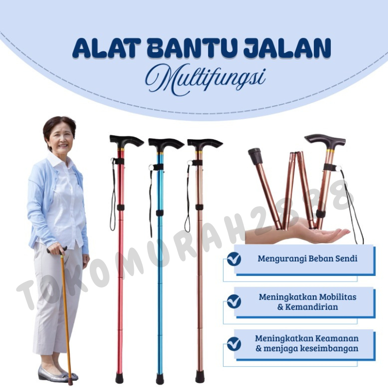TONGKAT LIPAT BANTU JALAN DENGAN SENTER LED/ TONGKAT JALAN MANULA LIPAT DENGAN LAMPU SENTER