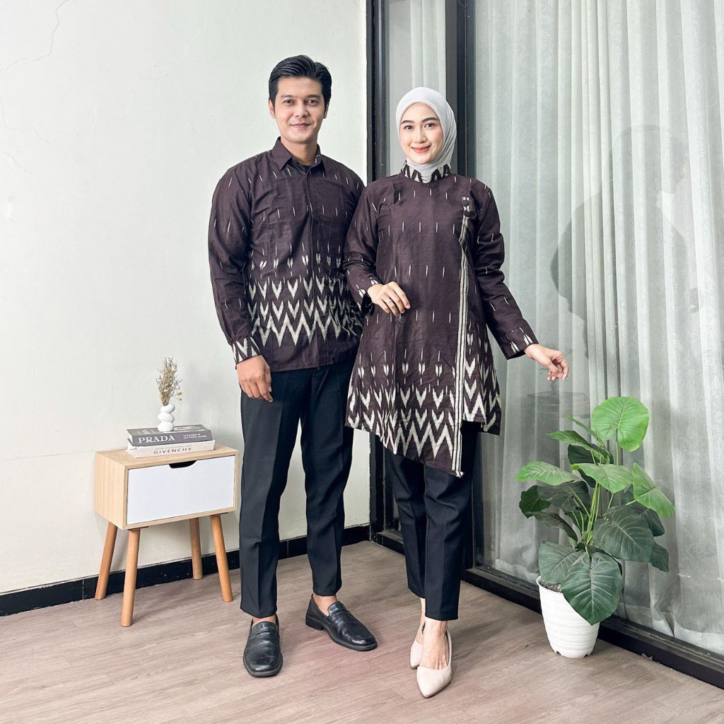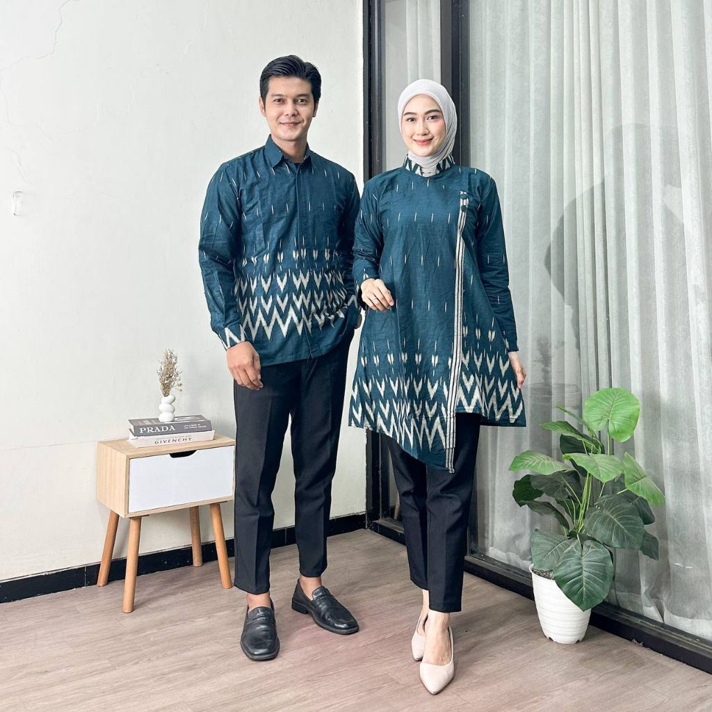 Batik Couple Modern (BATIK TRUNTUM) - Baju Batik Couple Modern Tunik Resleting Belakang Kemeja Batik Lengan Panjang
