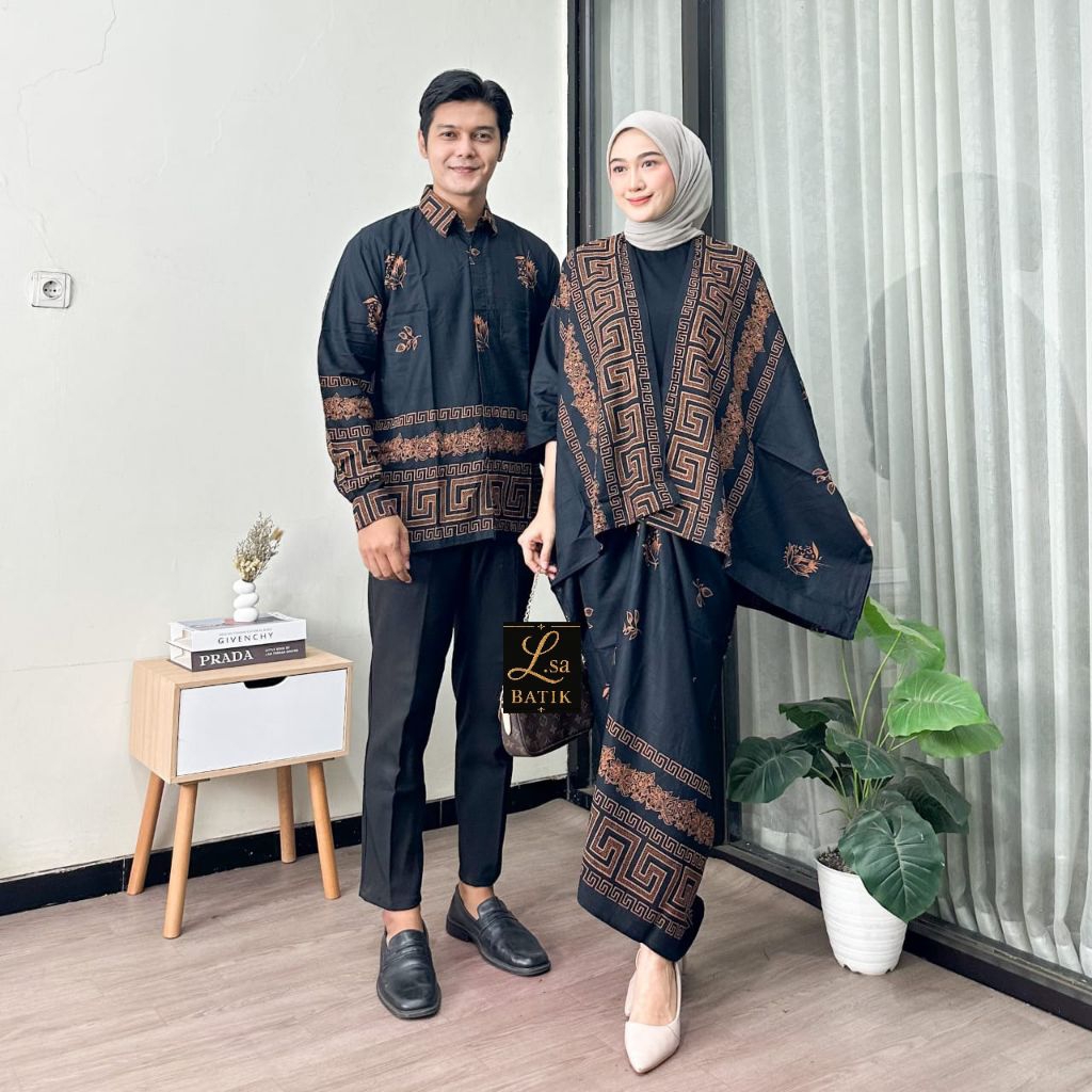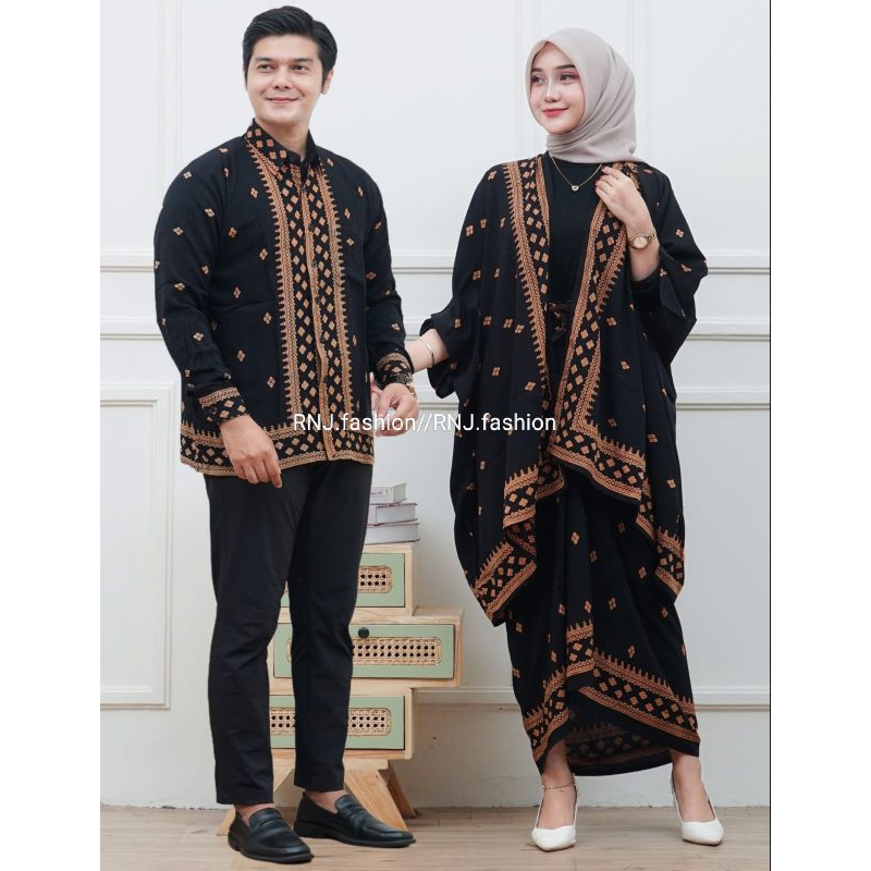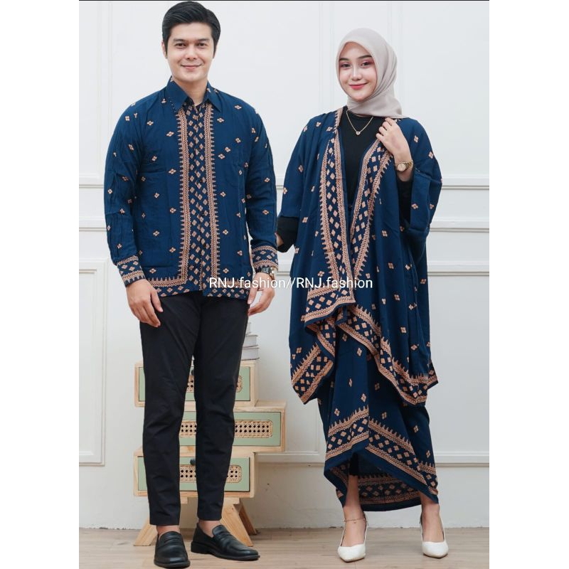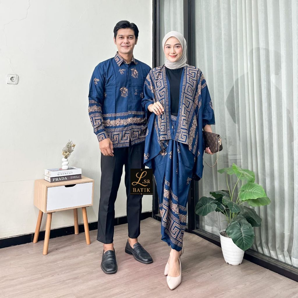 couple kemeja set cardigan baju kondangan keluarga motif batik canai