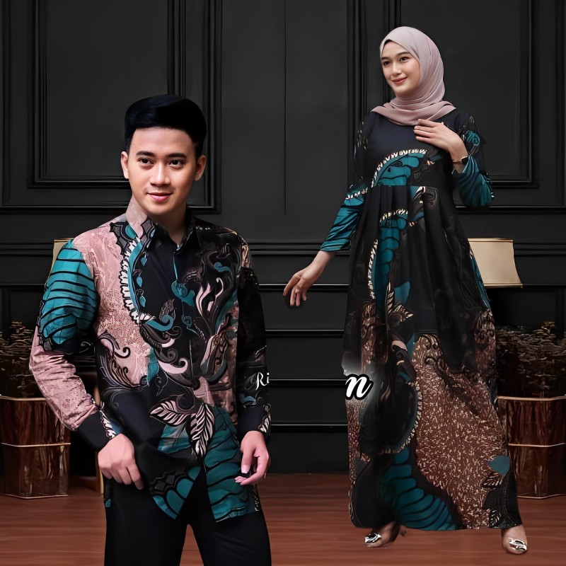 Baju Batik Couple Kemeja Panjang Gamis Maxi Tali Samping Motif batik
