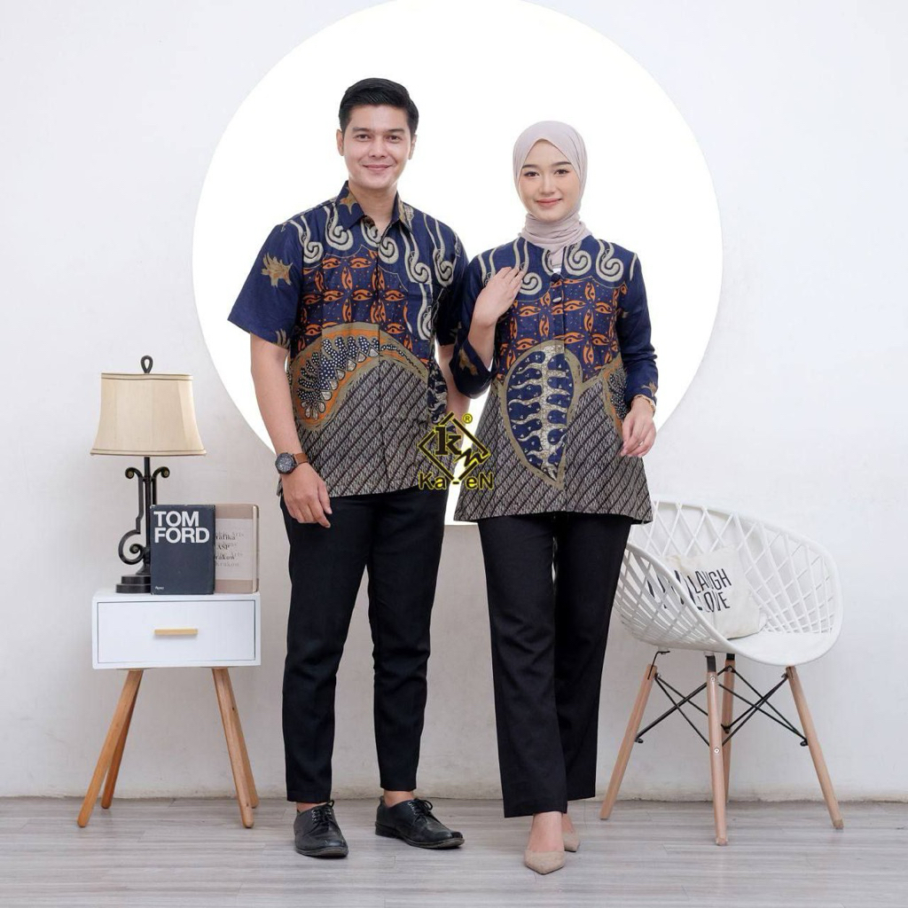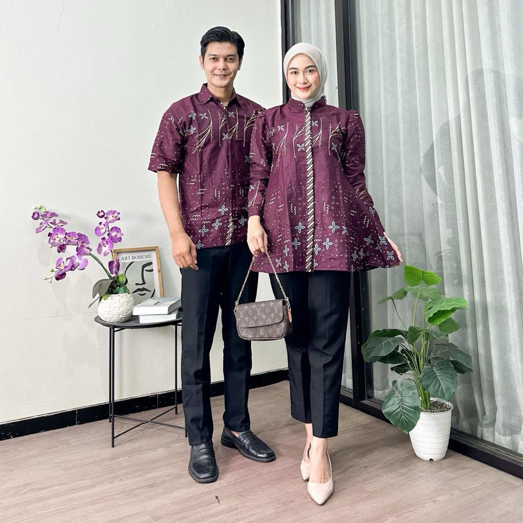 Batik Couple Modern Pria Wanita Busui Friendly/Full Kancing Depan Saku Samping Ready Seragam Katun