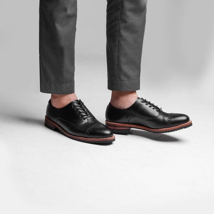 Portee Goods Sepatu Kulit Kerja Pria Oxford Captoe Hitam - 39