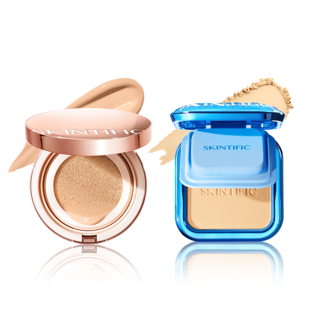 Skintific Official Store 2 Ni 1 Powder Makeup 2Pcs Set Skincare Wanita Glowing Bpom Cushion Moisturizer Sunscreen Serum
