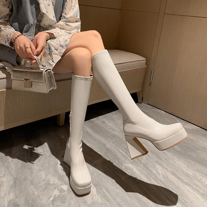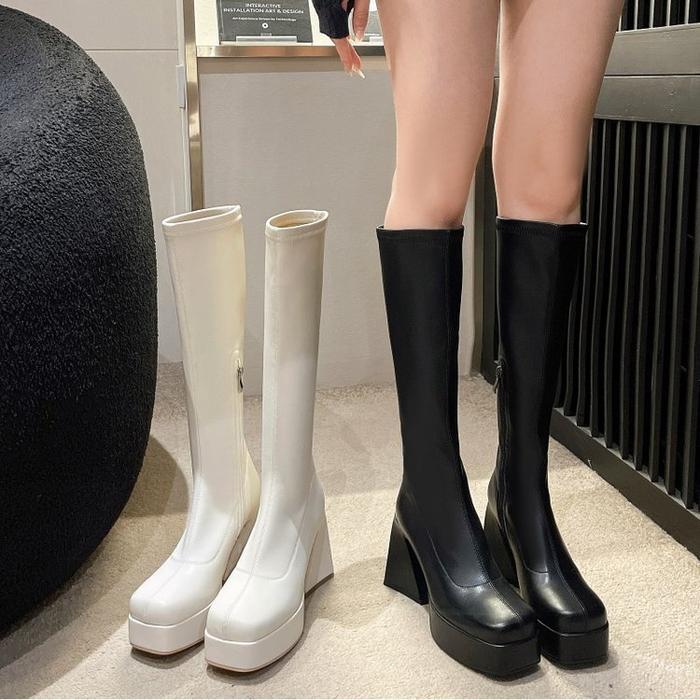 Pinkey P295 Sepatu Boots Panjang Wanita Boots Winter Overknee Leather Elastic Putih Shoes Hitam - Hitam, 38