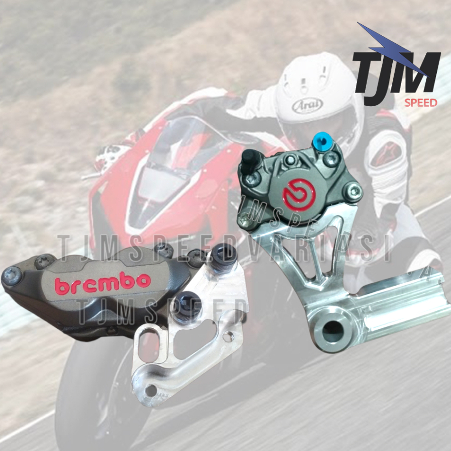Paket kaliper Brembo P4 4P P2 2P piston Grey Red Logo + breket kaliper depan belakang T7 Ninja RR Posisi Atas