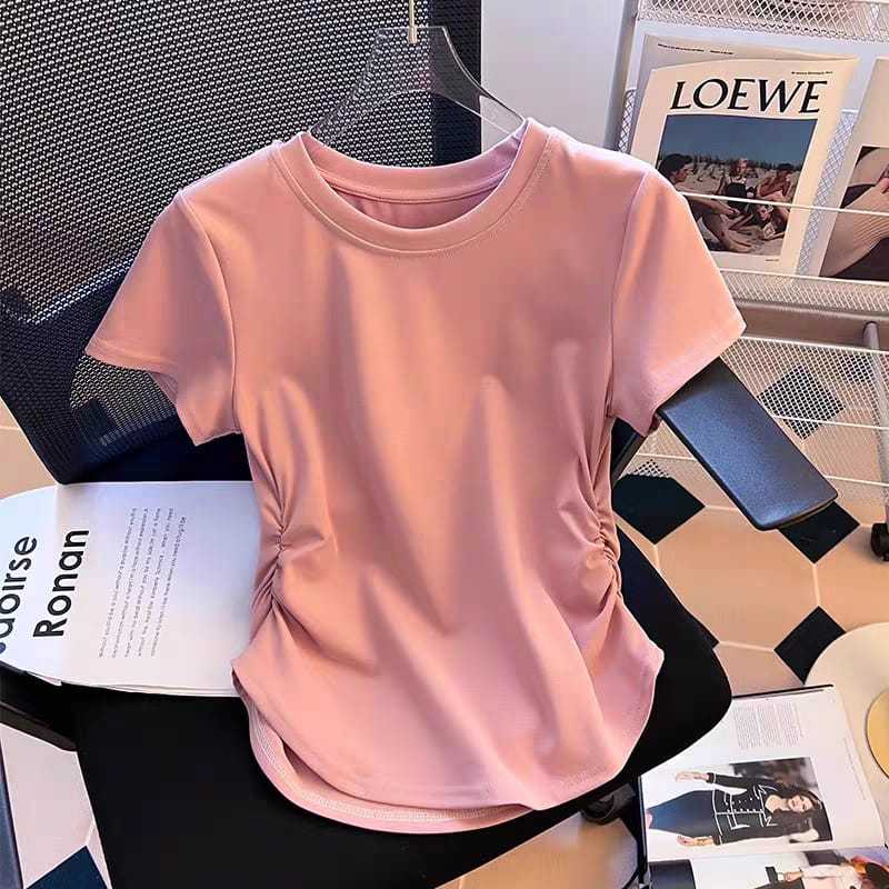 Baju Oblong Wanita Lengan Pendek / Kerut Karet Kiri Kanan / Bahan Spandek Distro Printing Premiun / Atasan / T-shirt Dig